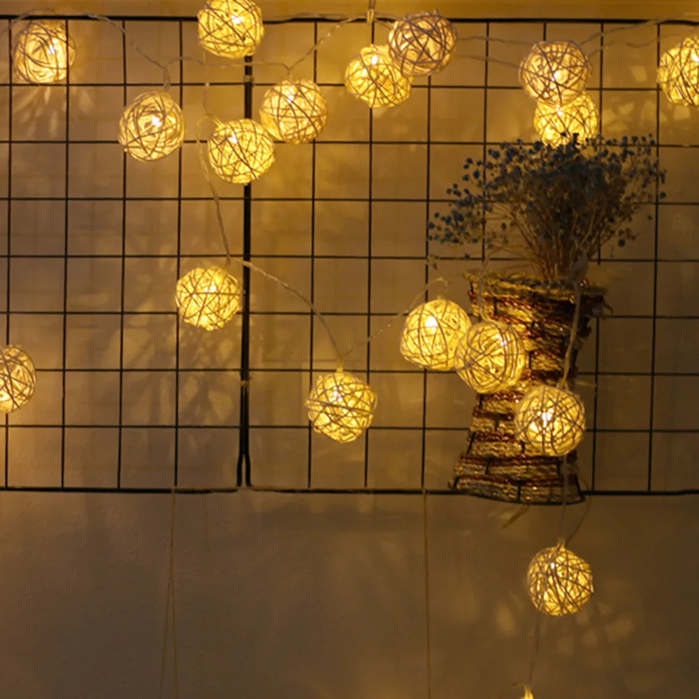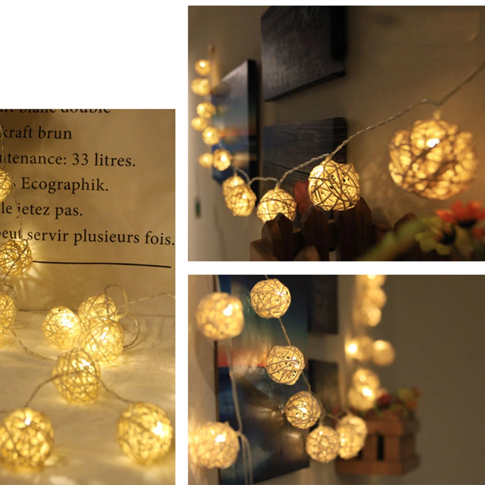 Гирлянсветильник 2,5 м с 20 светодиодами, гирлянда из ротанга с хло...