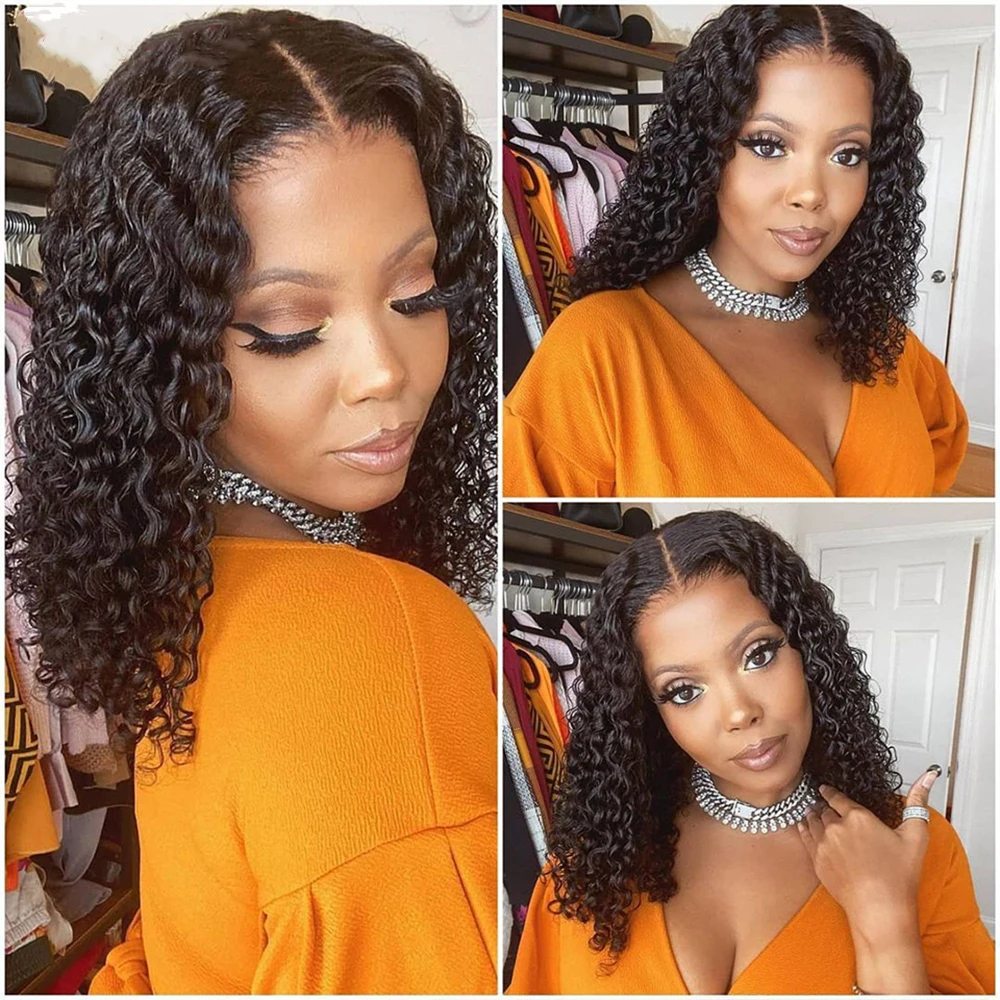 Бразильские Волнистые Короткие волосы боб 13X 4, парик из человеческих волос с передней застежкой, парик без клея, предварительно выщипанные, глубокие волнистые, вьющиеся, фронтальные парики боб