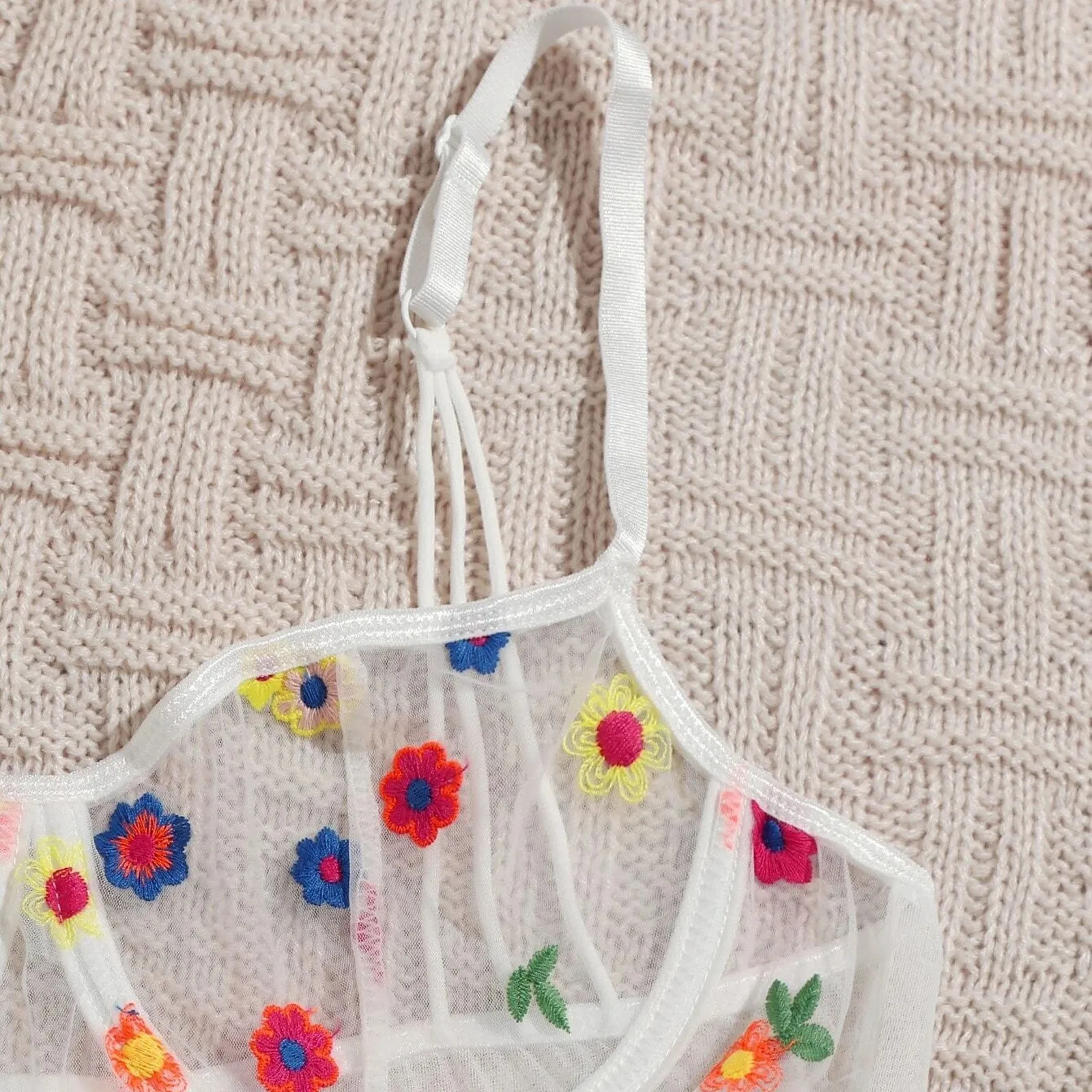 Комплект нижнего белья женский, прозрачный, с цветочным принтом