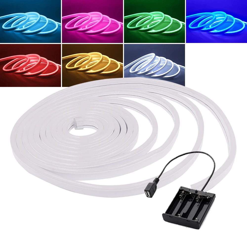 Неоновая лента, 5 В, на батарейках, IP65, водонепроницаемая неоновая вывеска, красная, синяя, розовая, белая, голубая, 2835, 120 светодисветодиодный, sm светодиодный ная лента для домашнего декора