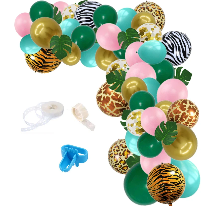 Розовые дикие воздушные шары на день рождения, украшение в виде джунглей, сафари, животных, вечеринки для девочек, Первая фотография, столовая посуда, принадлежности