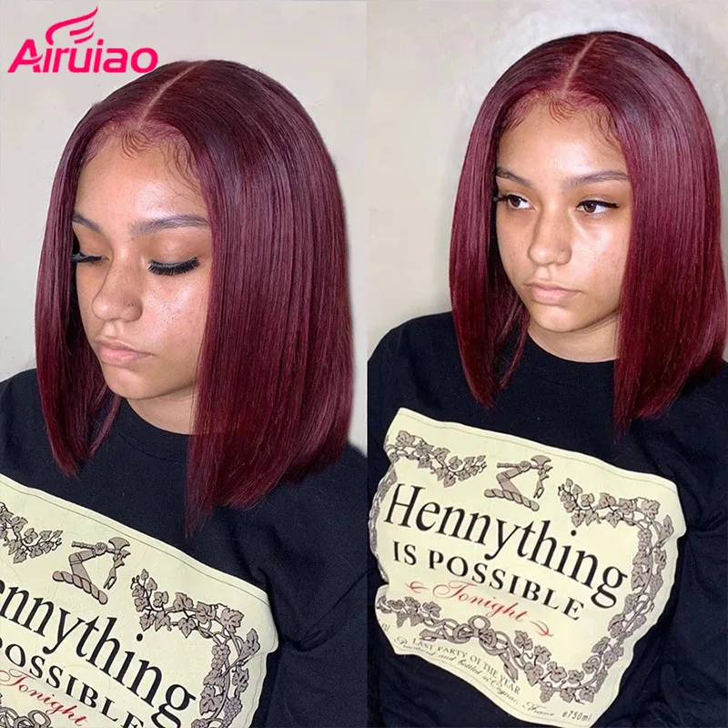 Короткий парик Боб бордовый 99j, цветные передние парики на сетке с вырезами фея, красный женский парик из человеческих волос