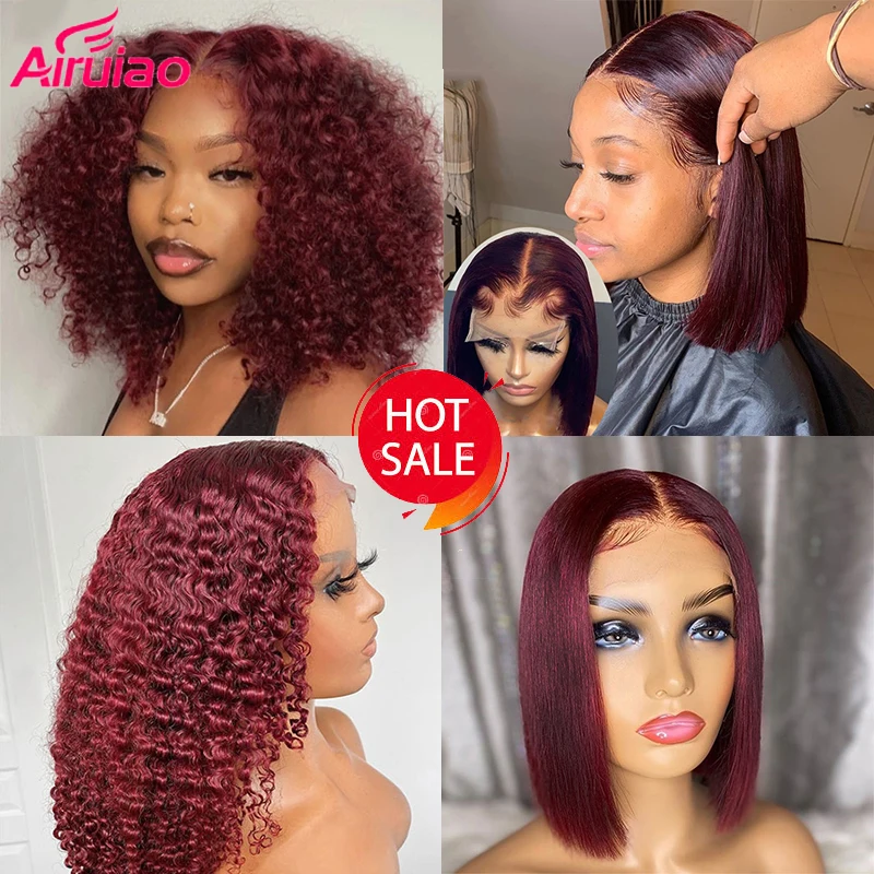 99j цветной кудрявый парик фронта шнурка бордовый красный короткий парик обрезанный Боб фронтальные человеческие волосы парики для женщин preprucked волна воды парик