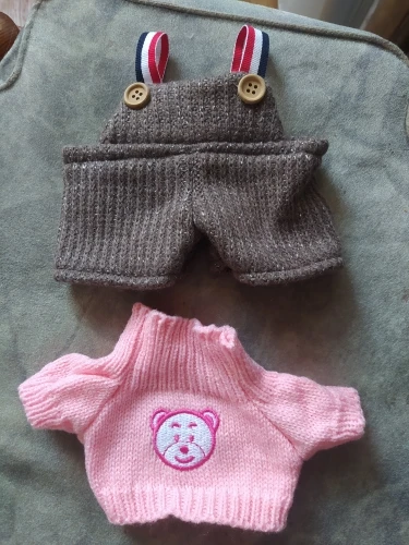 Цвет: розовые и белые полосы (без игрушек), черно-белые полосы (без игрушек), синие двойные сердца (без игрушек), розовые сердца (без игрушек), розовые медведи (без игрушек), серые этикетки (не входят в комплект) с игрушками, розовый кардиган (без игрушек), коричневый комбинезон с серебряной проволокой (Без игрушек), серый комбинезон (без игрушек), коричневый комбинезон (без игрушек), черный комбинезон (без игрушек)