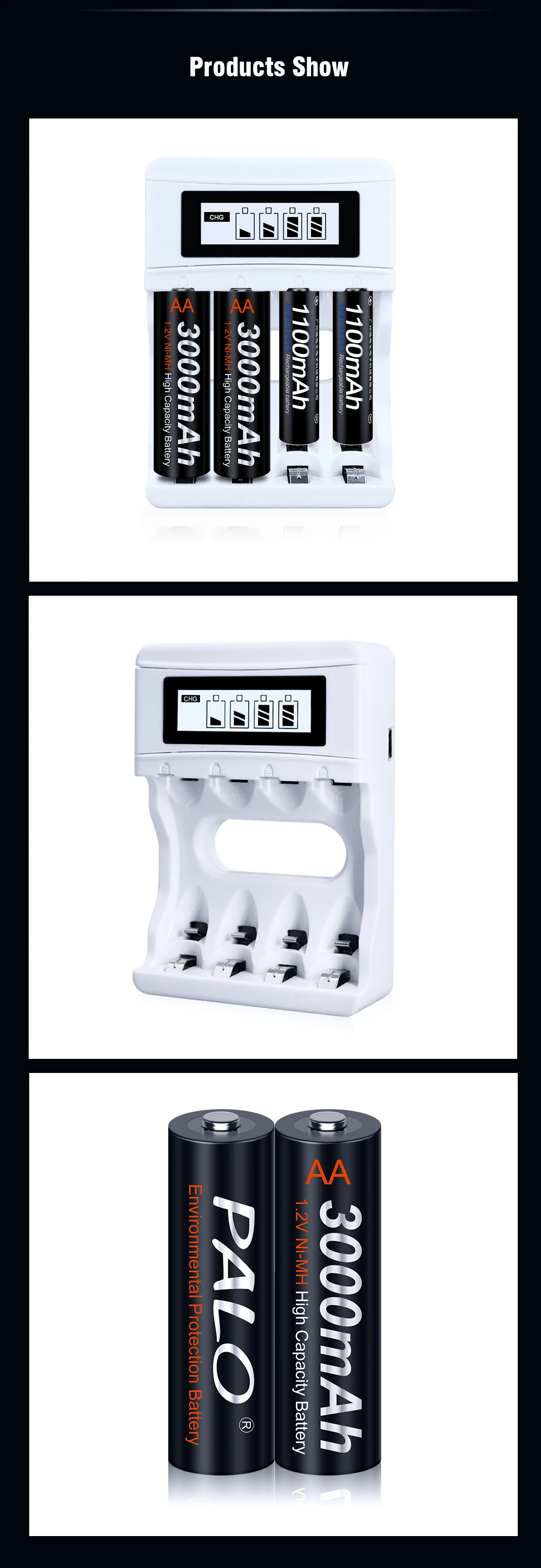 Умное зарядное устройство PALO с светильник-дисплеем и никель-металлогидридной аккумуляторной батареей AAAAA + AA 3000 мАч