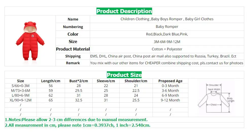 Комбинезон детский зимний, для мальчиков и девочек, От 0 до 2 лет