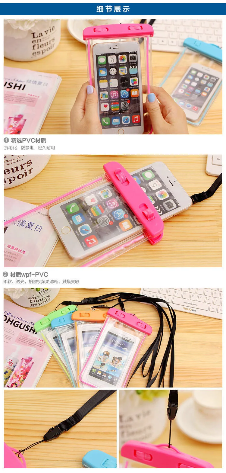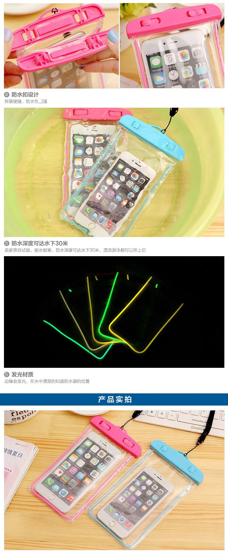 Светящиеся сумки для плавания, прозрачный водонепроницаемый чехол для плавания для всех сотовых телефонов размером менее 6 дюймов