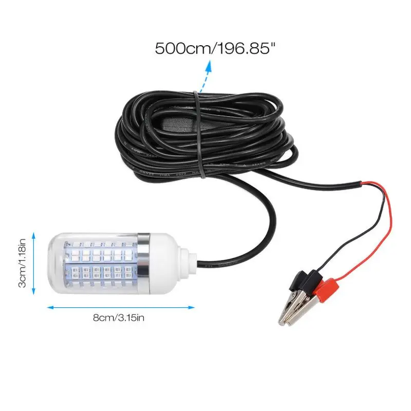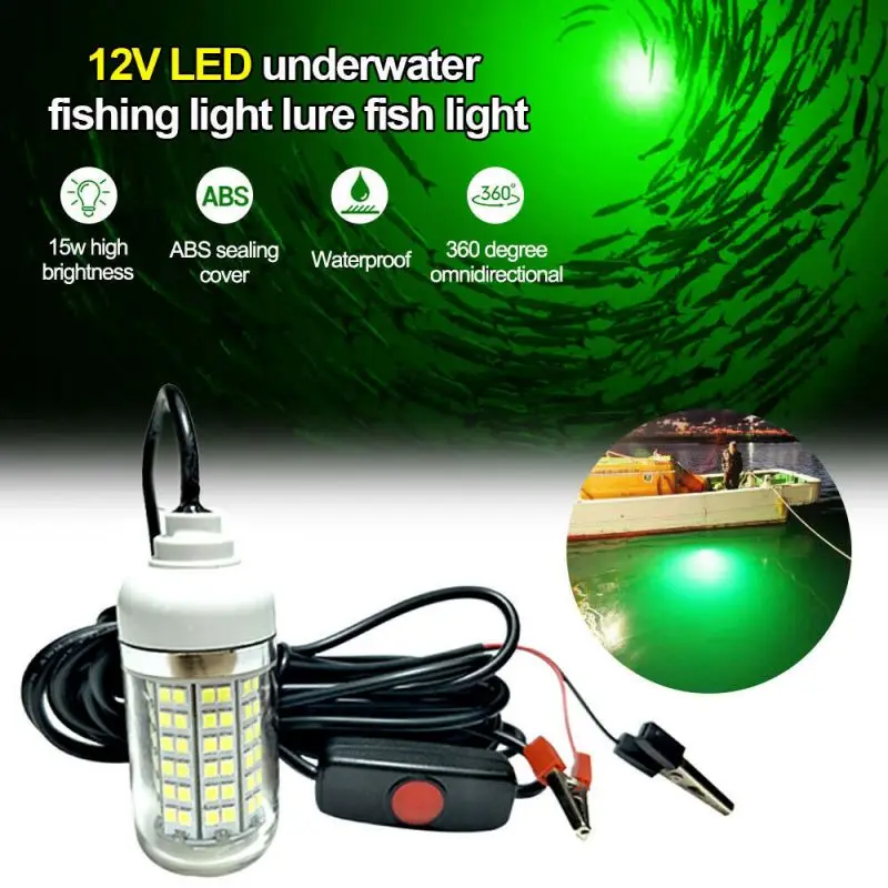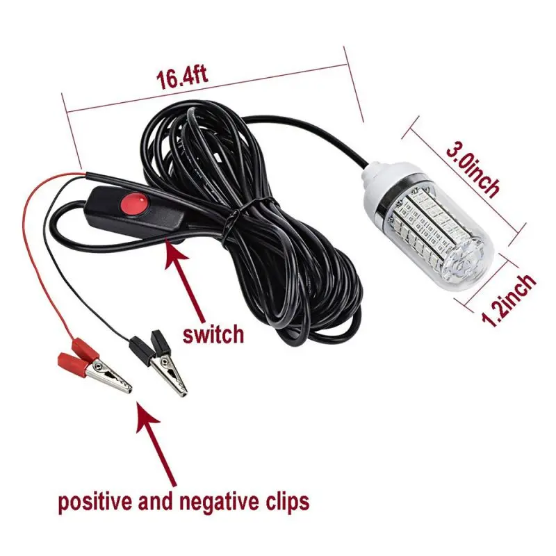 Водонепроницаемый: Светодиодный светильник для подводной рыбалки IP 68 с зажимами для аккумулятора и водонепроницаемым переключателем. Высококачественный и независимый переключатель безопасен.