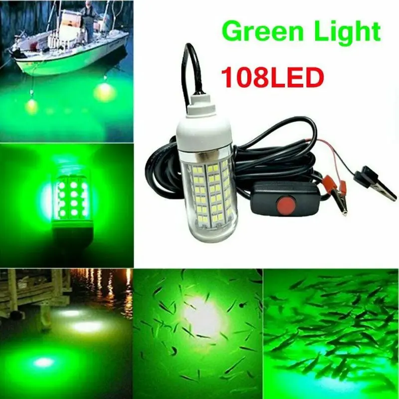 Рыболовная лампа 12 В, 108 светодиодов, 2835, водонепроницаемая, Ip68, приманка, рыбопоисковая лампа, притягивающая креветки, кальмар, крилл, 4 цвета, подводная, зеленая, синяя