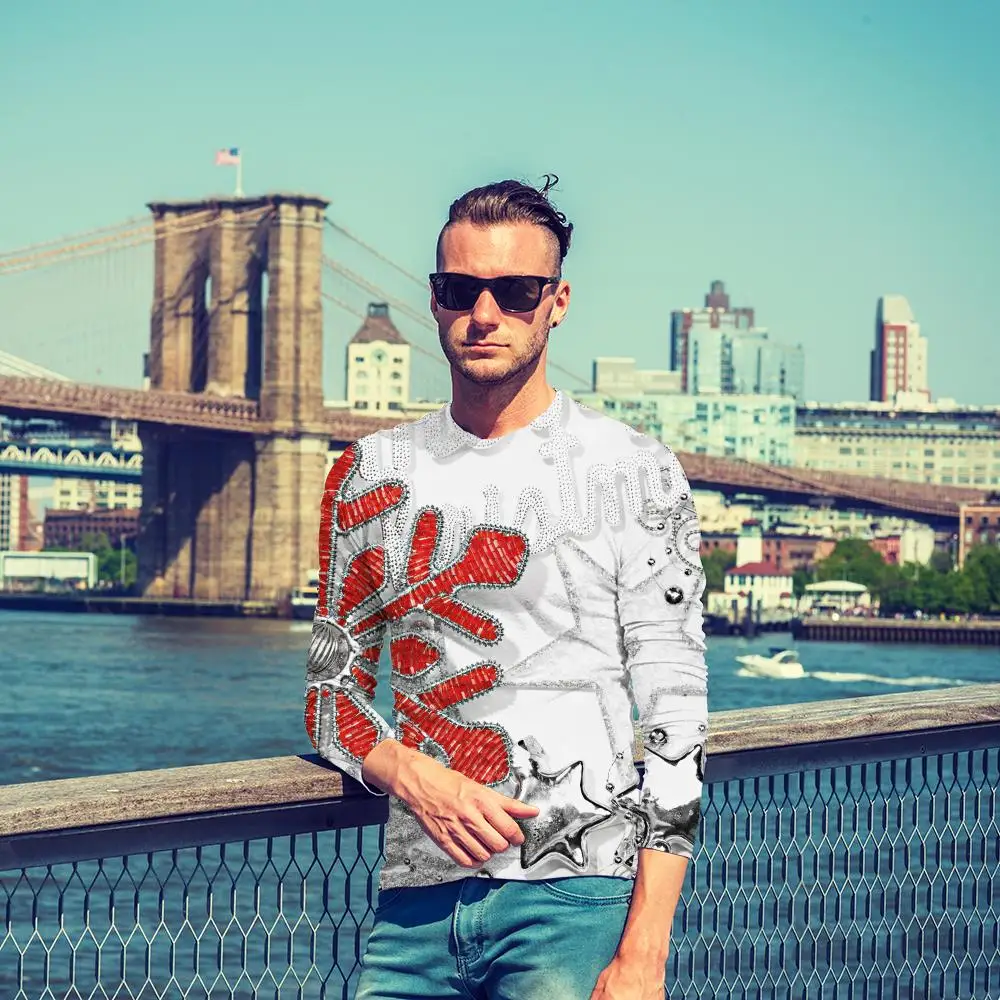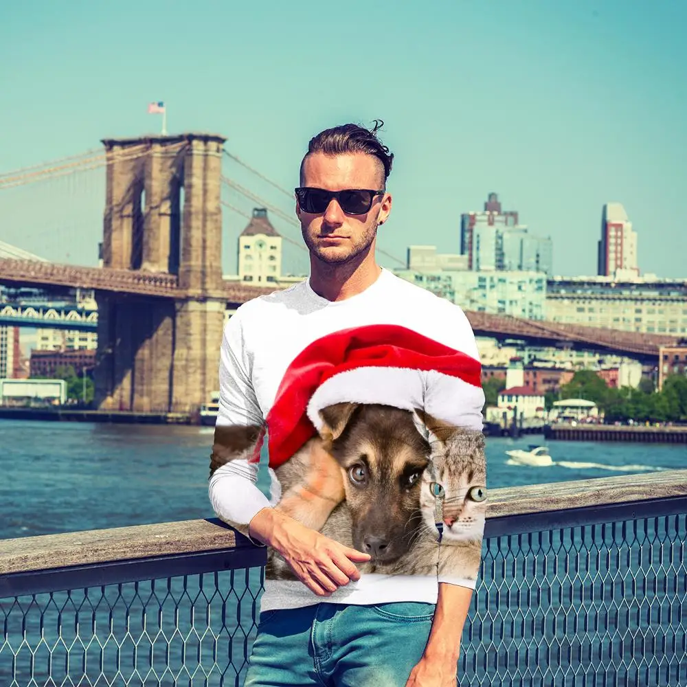 Мужская футболка KYKU, белая футболка с длинным рукавом и 3D-принто...