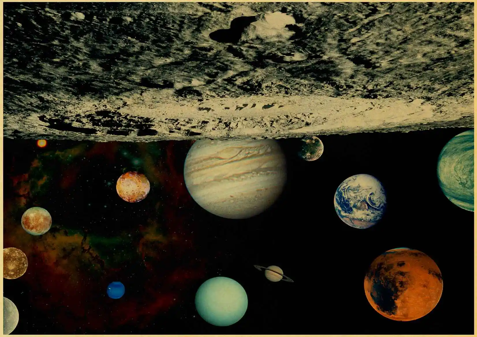 Солнечная система земля галактика винтажные плакаты крафт-бумага ба...