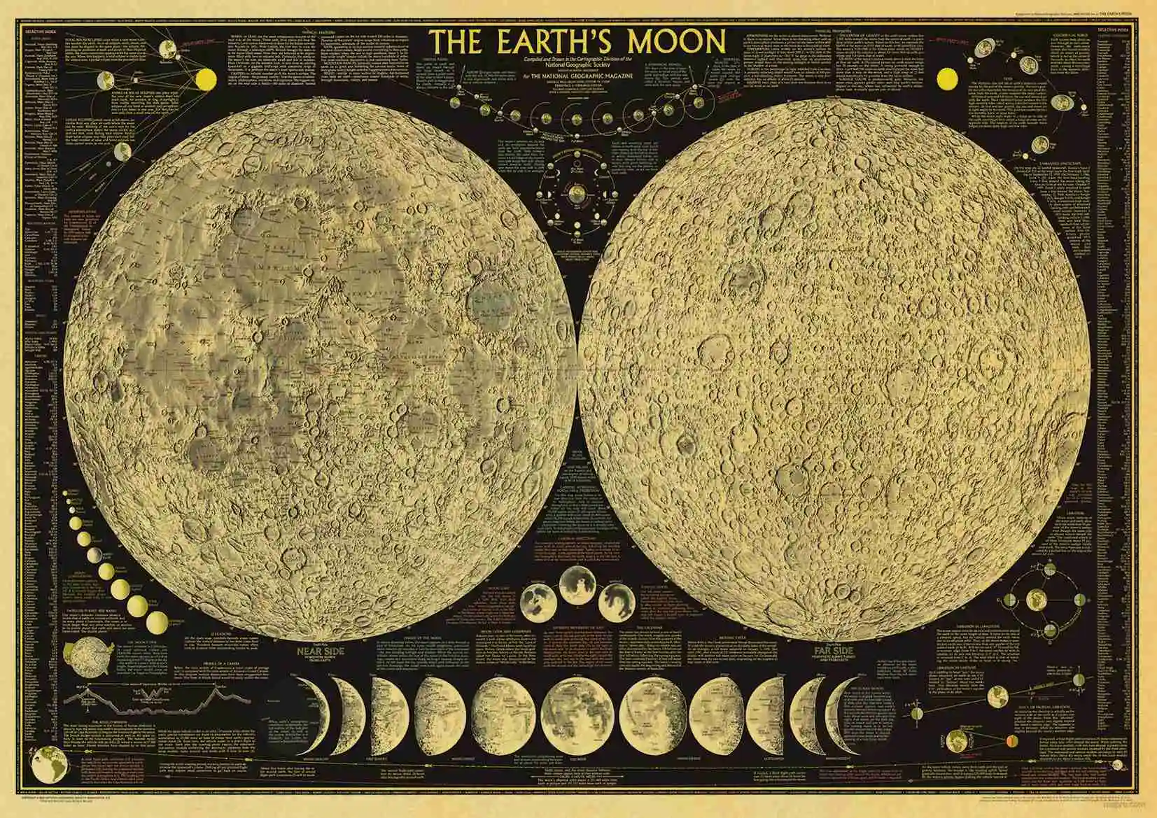Астрономическая серия, винтажная крафт-бумага, Постер земли, луна, топографическая карта, солнечная система, наклейки для бара, домашнего декора
