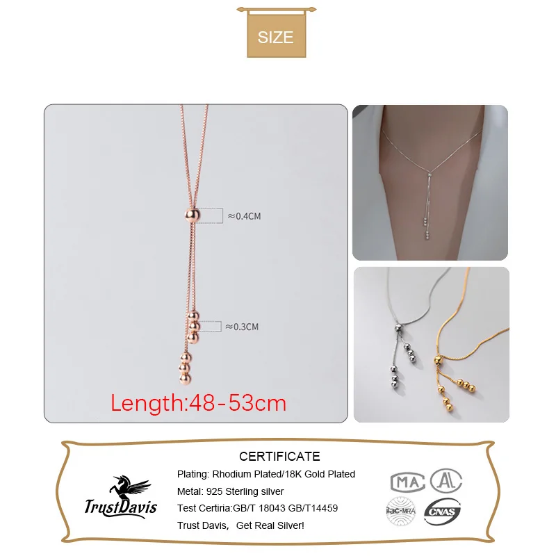 Trustdavis Настоящее Стерлинговое Серебро 925 пробы, модное ожерель...