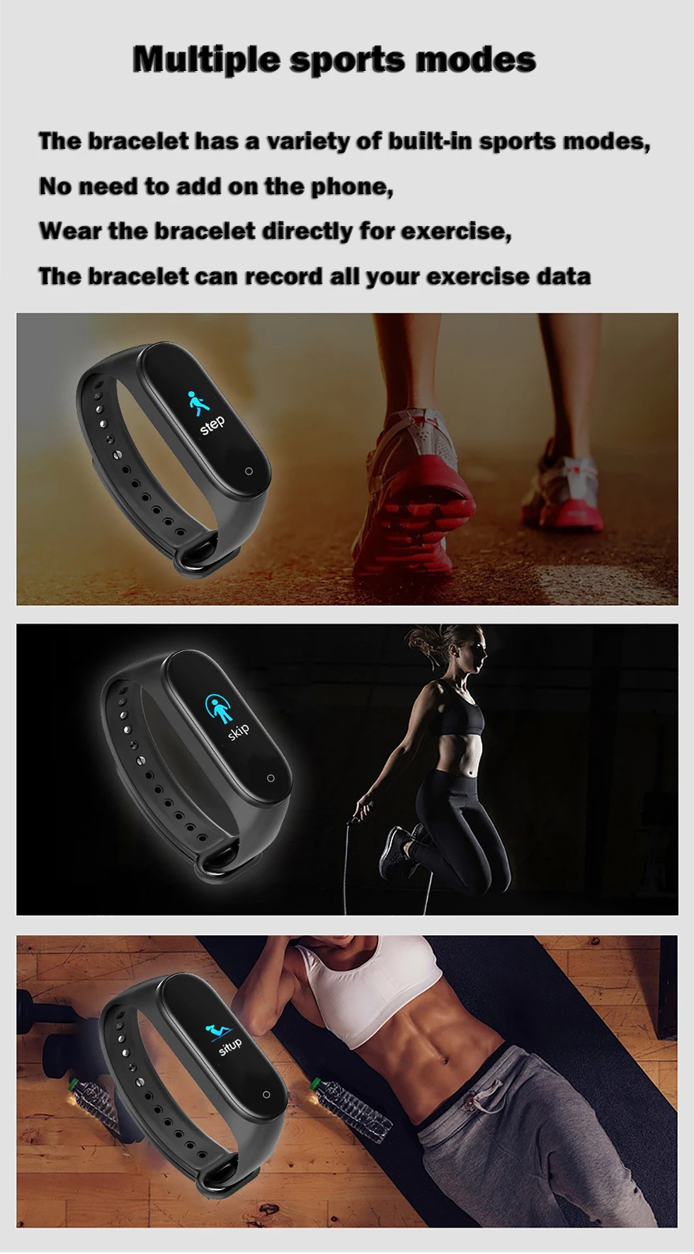 Отслеживание активности в течение всего дня, точная Запись в реальном времени пройденного Расстояния, шагов и сожженных калорий. Несколько режимов упражнений помогут вам лучше понять конкретные действия и физические условия во время упражнений.