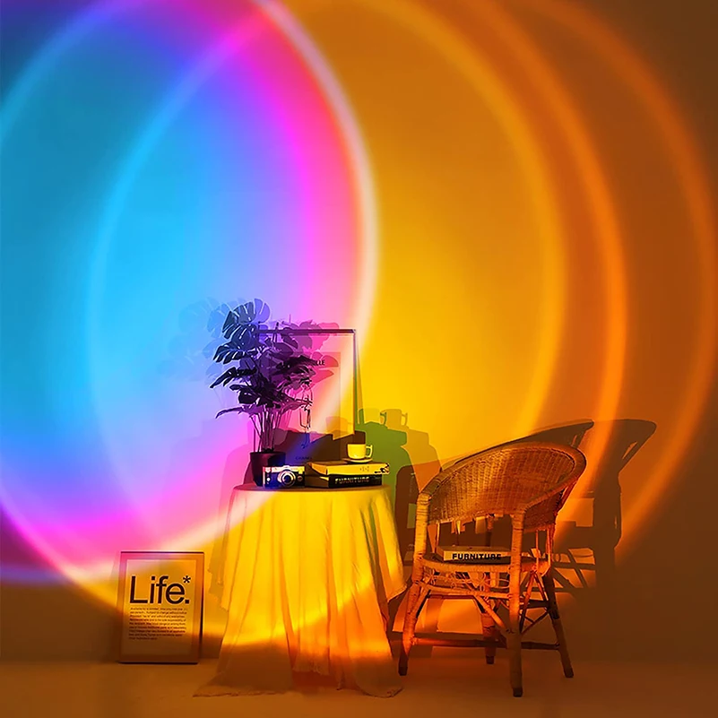 Это многоцветный светильник на закате, он может поддерживать закат и радугу в вашей жизни, чтобы вы могли видеть радугу и закат в любое время и в любом месте. Существуют различные варианты, различные функциональные типы огней, деформируемый тип, мини-тип, тип дистанционного управления и т. д.