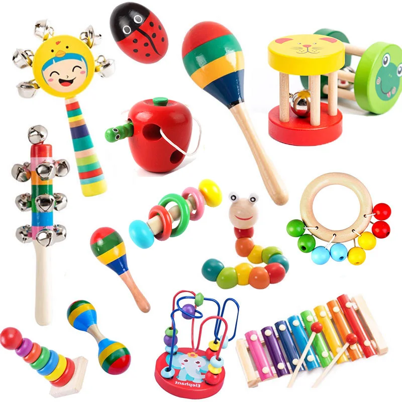 Деревянные погремушки Монтессори для малышей, молоток с песком, погремушка для малышей, музыкальные деревянные игрушки, Развивающие детские игрушки для детей 0-12 месяцев