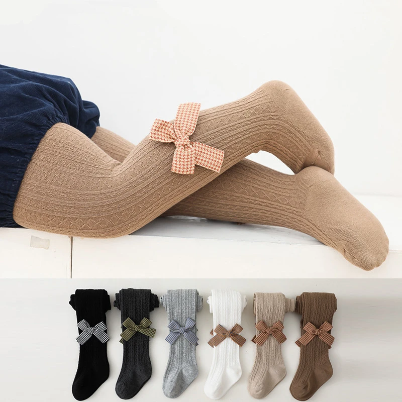 Хлопковые повседневные осенние новые детские колготки, леггинсы для девочек с двойным иглами и бантом, леггинсы из чесаного хлопка для маленьких девочек, чулки