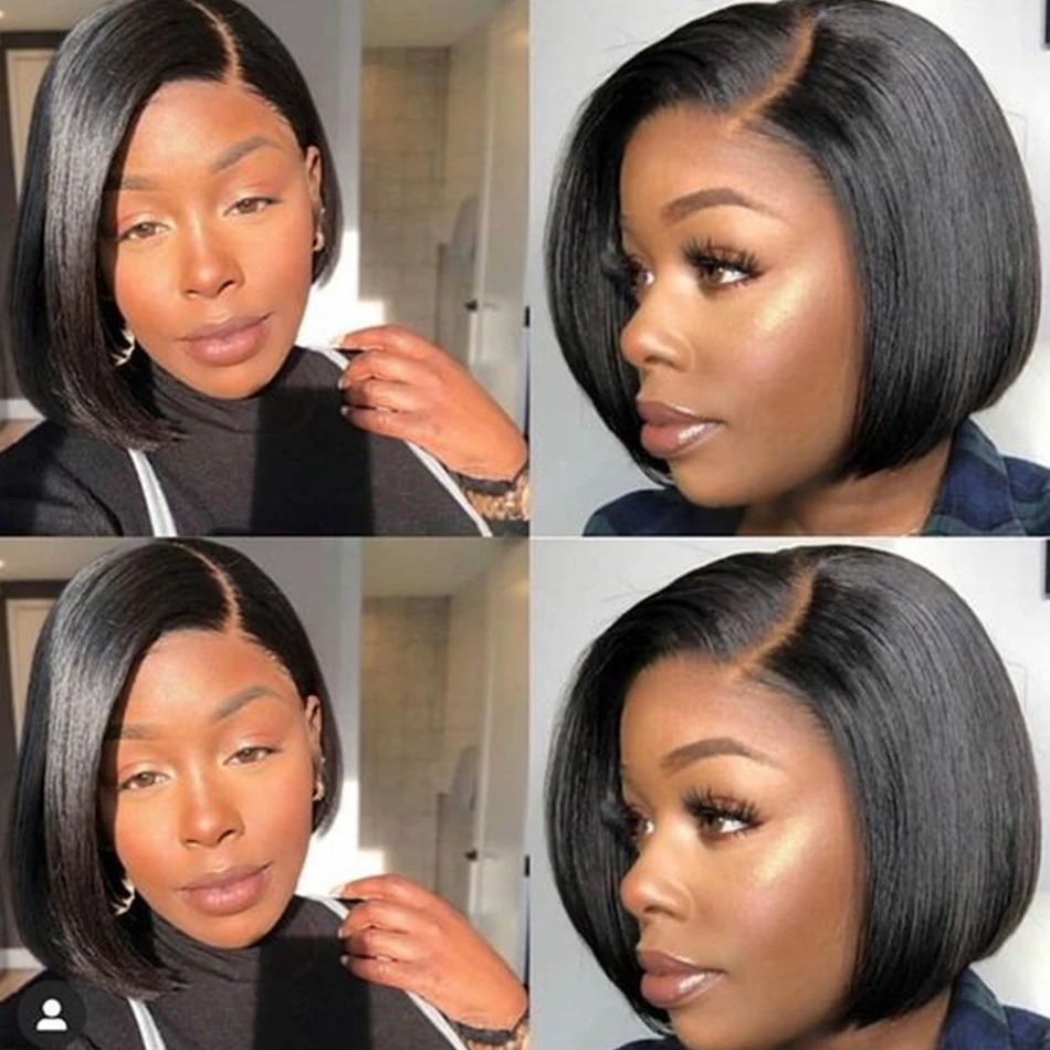Парик из человеческих волос на сетке 4x4, парики для чернокожих женщин, индийские короткие прямые волосы, 8-16 дюймов, прямые волосы с Бобом, предварительно выщипанные волосы