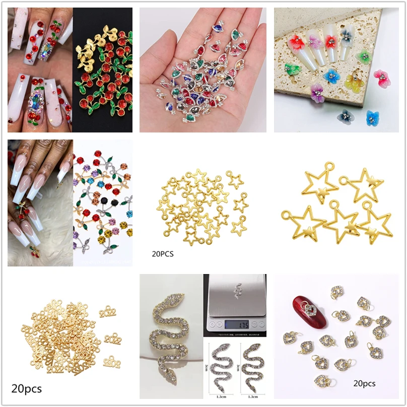 Смешанные вишневые змеи большого размера 3D, искусственные ногти, украшение, сплав, планет, дизайн ногтей, стразы, аксессуары, цветы, DIY, маникюр D30