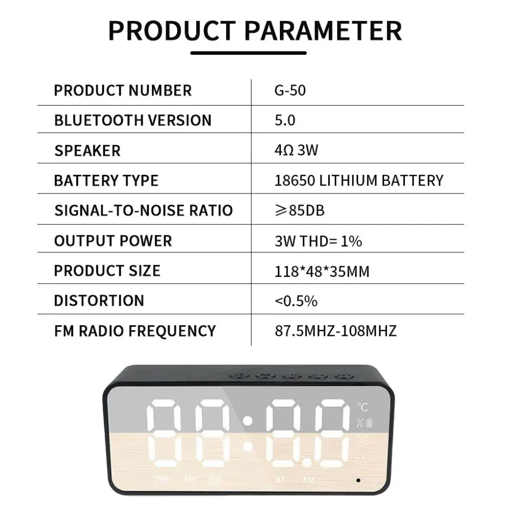 Описание:Есть два независимых будильника, которые можно установить и использовать самостоятельно.Громкость будильника постепенно увеличивается, чтобы разбудить вас, а также может использоваться в качестве bluetooth-совместимого динамика, удовлетворяя ваши различные потребности.Встроенный микрофон без рук прост в использовании, когда на телефоне, используйте динамик в качестве громкоговорителя и свободно пристегивайте руки встроенным микрофоном, удобным для вашей жизни.Этот вид Bluetooth совместимым динамик и радио-это «2 в 1» и легко получить радио, чтобы слушать в любое время и в любом месте, экономия денег для вас.Большой светодиодный дисплей отображает время и содержание с первого взгляда, поддерживает три различных настроек яркости, подходит для чтения перед сном и сопровождения сна после сна. Яркость можно регулировать гибко.Спецификация:Bluetooth: 5,0.Расстояние передачи: 10 м.Частотная характеристика: 80 Гц-20 кГц.Кв.: ≥ 85 дБ.Искажение: <0.5%.Выходная мощность: 5 Вт.Напряжение зарядки: 5V-1A.Батарея Тип: 3,7 V 1400 мА · ч.Tf-карта: Поддержка TF (максимальная поддержка 16G).Цвет: как на изображении.Примечание:Из-за светильник экране монитора фактический цвет детали цвет изделия на фото может быть s светильник ly отличается из-за характеристик монитора компьютера.Пожалуйста, допускайте небольшое отклонение в данных измерений и убедитесь, что вы не возражаете перед заказом.Посылка включает в себя:1 * bluetooth-динамик.1 * зарядный кабель.1 * руководство.