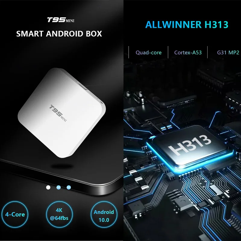 T95 Android 10,0 Smart TV BOX Allwinner H313 2,4G WIFI 8 Гб 128 ГБ