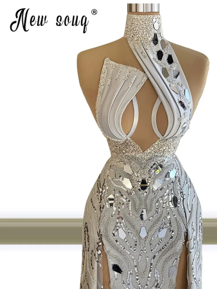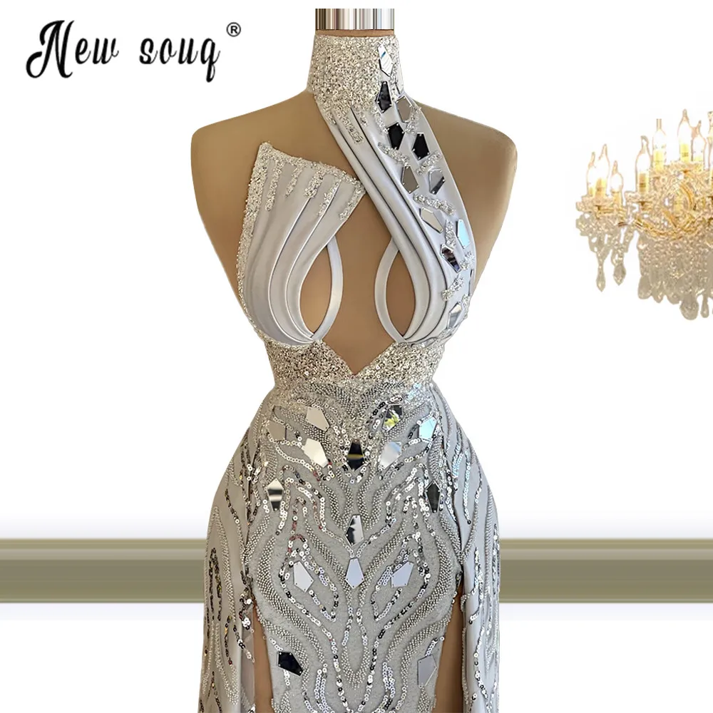 Новые серебристые Кристаллы Русалка Дубай вечерние платья 2021 женские элегантные разрезные боковые Выпускные платья халаты De Soiree на заказ
