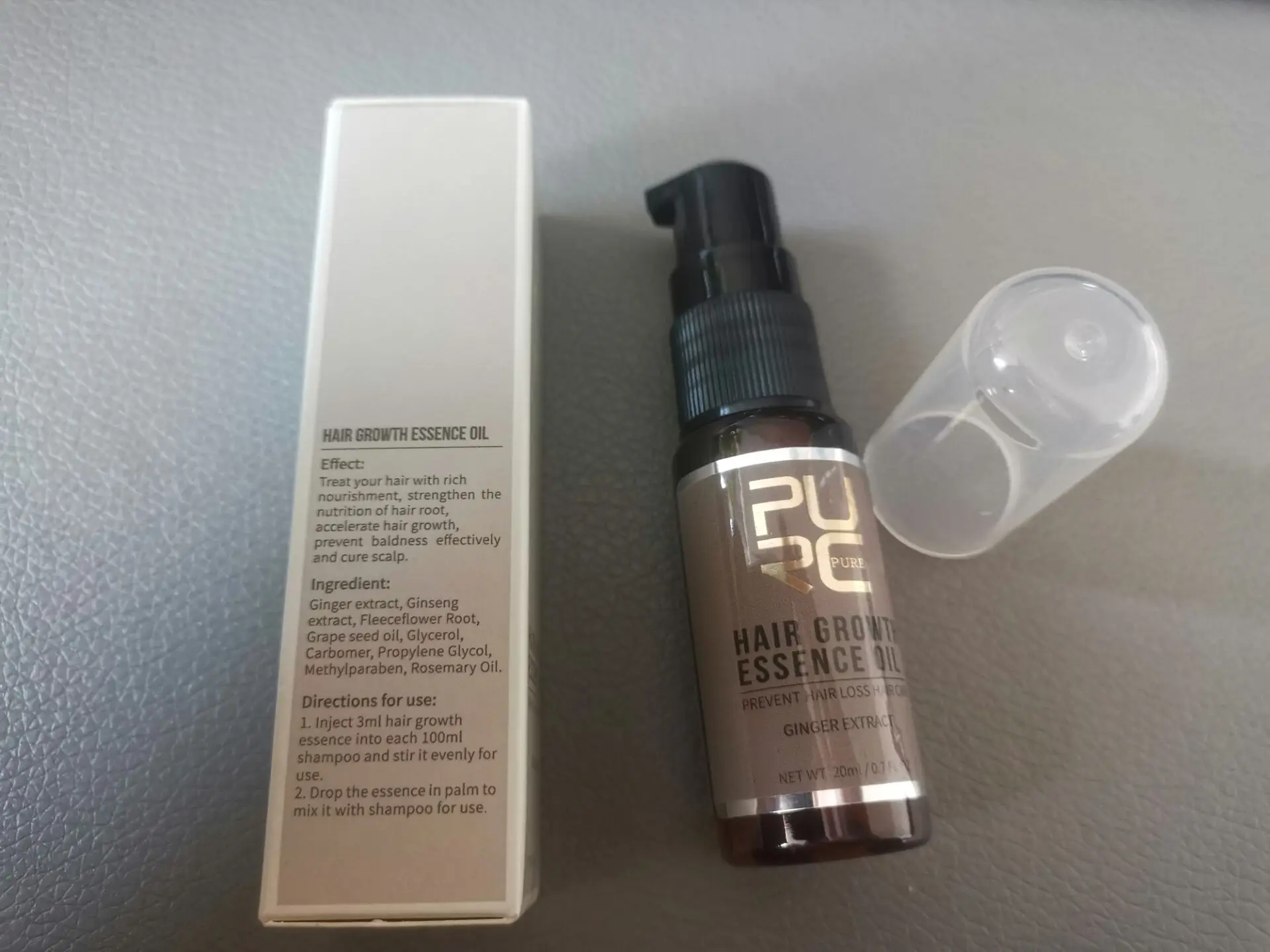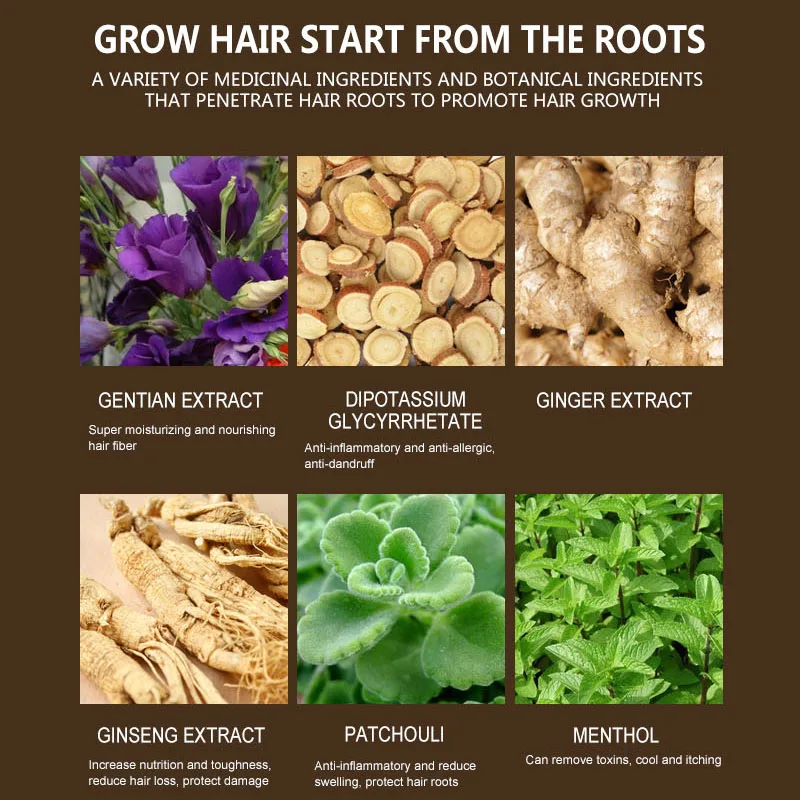 Название продукта Новый спрей для роста волосЭффективно предотвращает облысение и лечит кожу головыЭффект: обработайте волосы богатым питанием, укрепляйте питание корня волосИнгредиент: экстракт имбиря, экстракт женьшеня, корень Fleeceflower, масло виноградных косточек, глицерин, карбомер, пропиленгликоль, метилпарабен, масло розмаринаСрок годности: два года, крышка бутылки открыта, попробуйте использовать его в течение 4 месяцев
