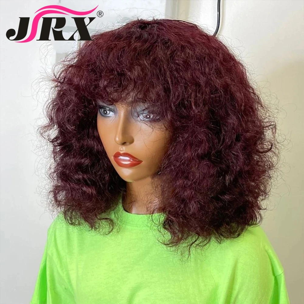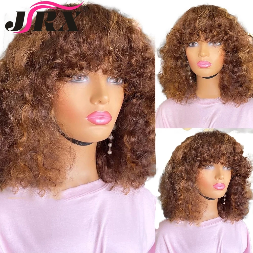 Парики из натуральных вьющихся человеческих волос 99j с челкой, полностью машинное изготовление, парики с короткими вьющимися волосами медового и светлого цвета, бразильские волосы без повреждений для женщин