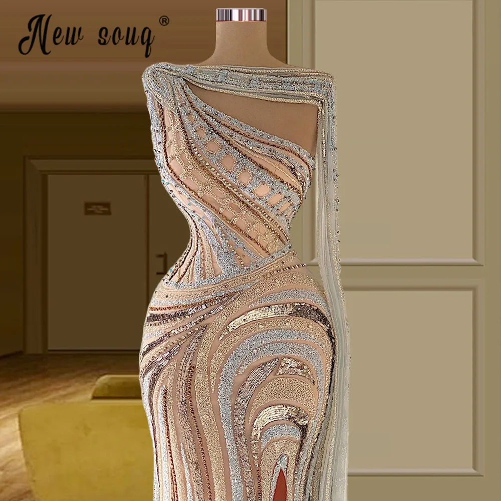 Арабское вечернее платье женское на одно плечо с бисером, кружевное...