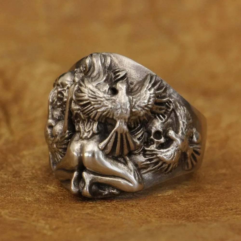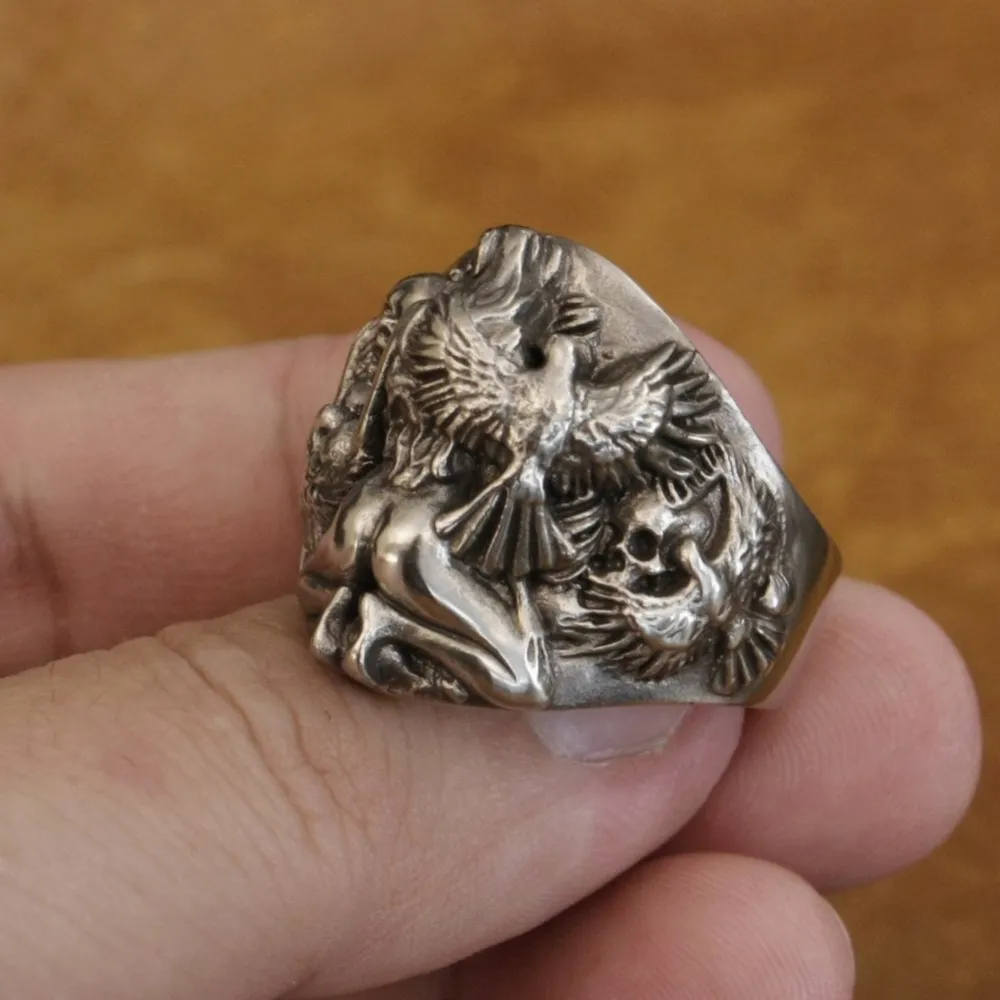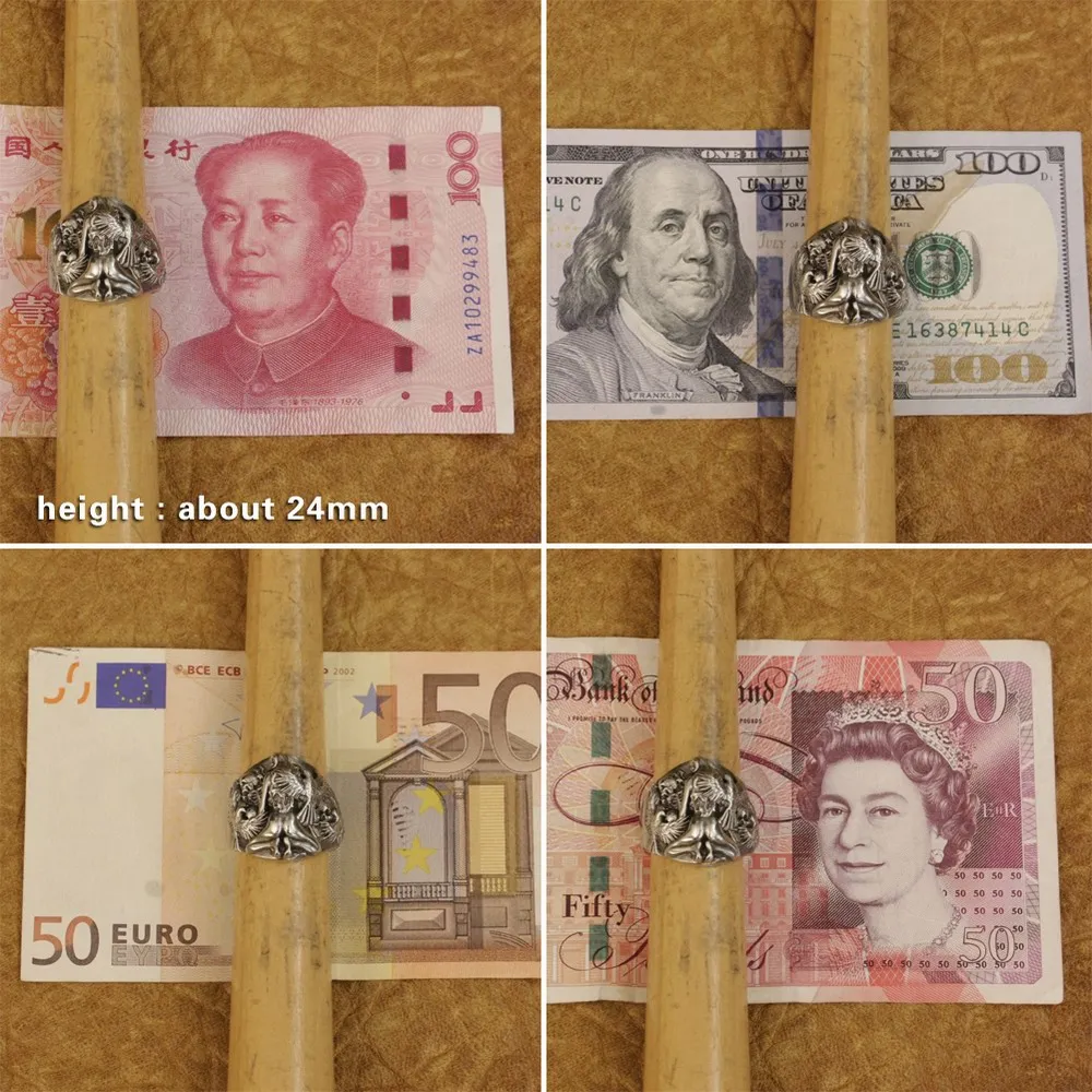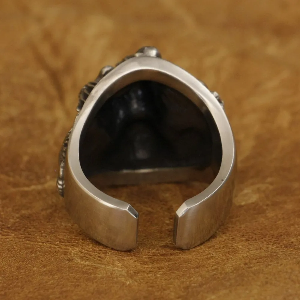 Это уникальное украшение станет прекрасным подарком для любого случая!Состояние:Новый и ручной работы в идеальной готовойМатериал:МельхиорВысота лица:Прибл.24 ммВес:Прибл.21,5 граммРазмер США:#7 ~ #15Примечание: