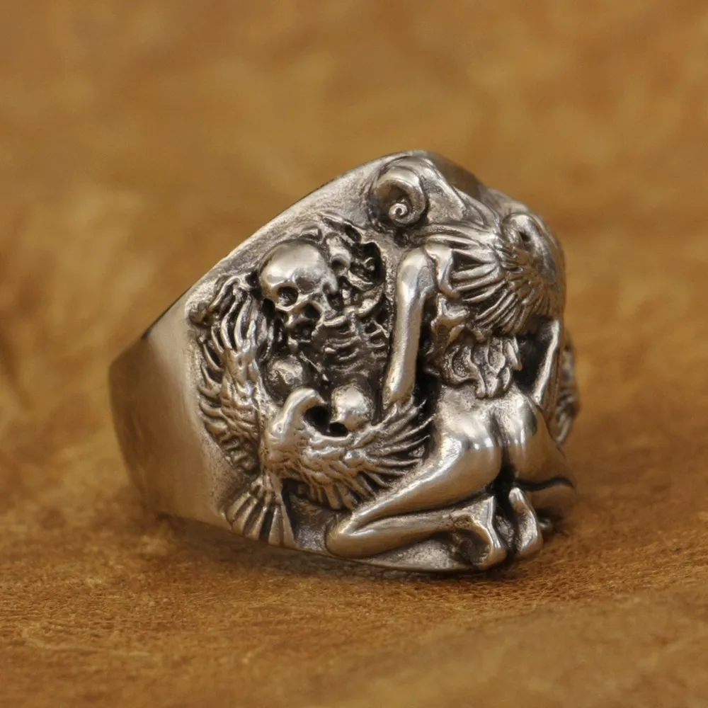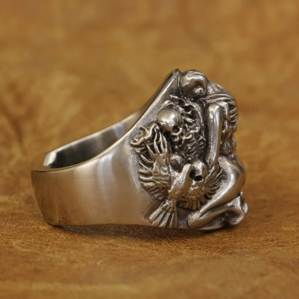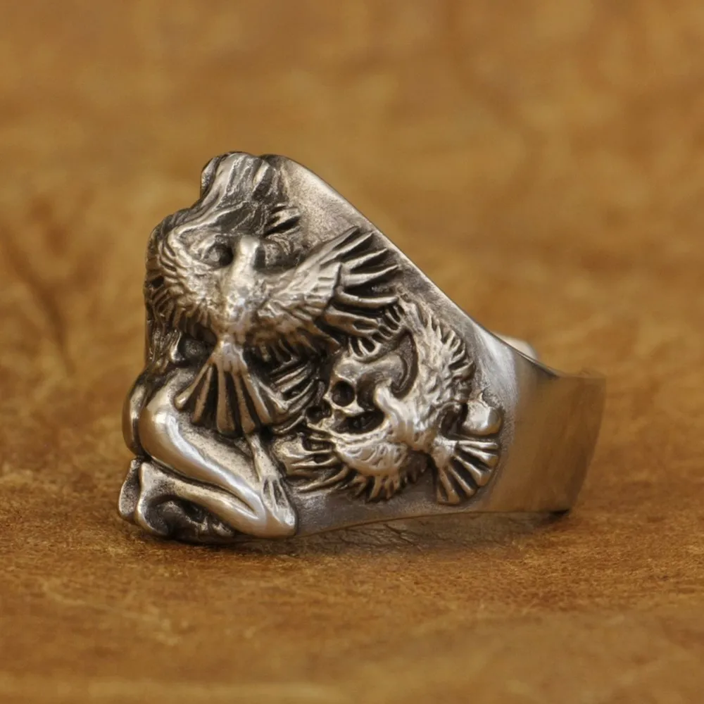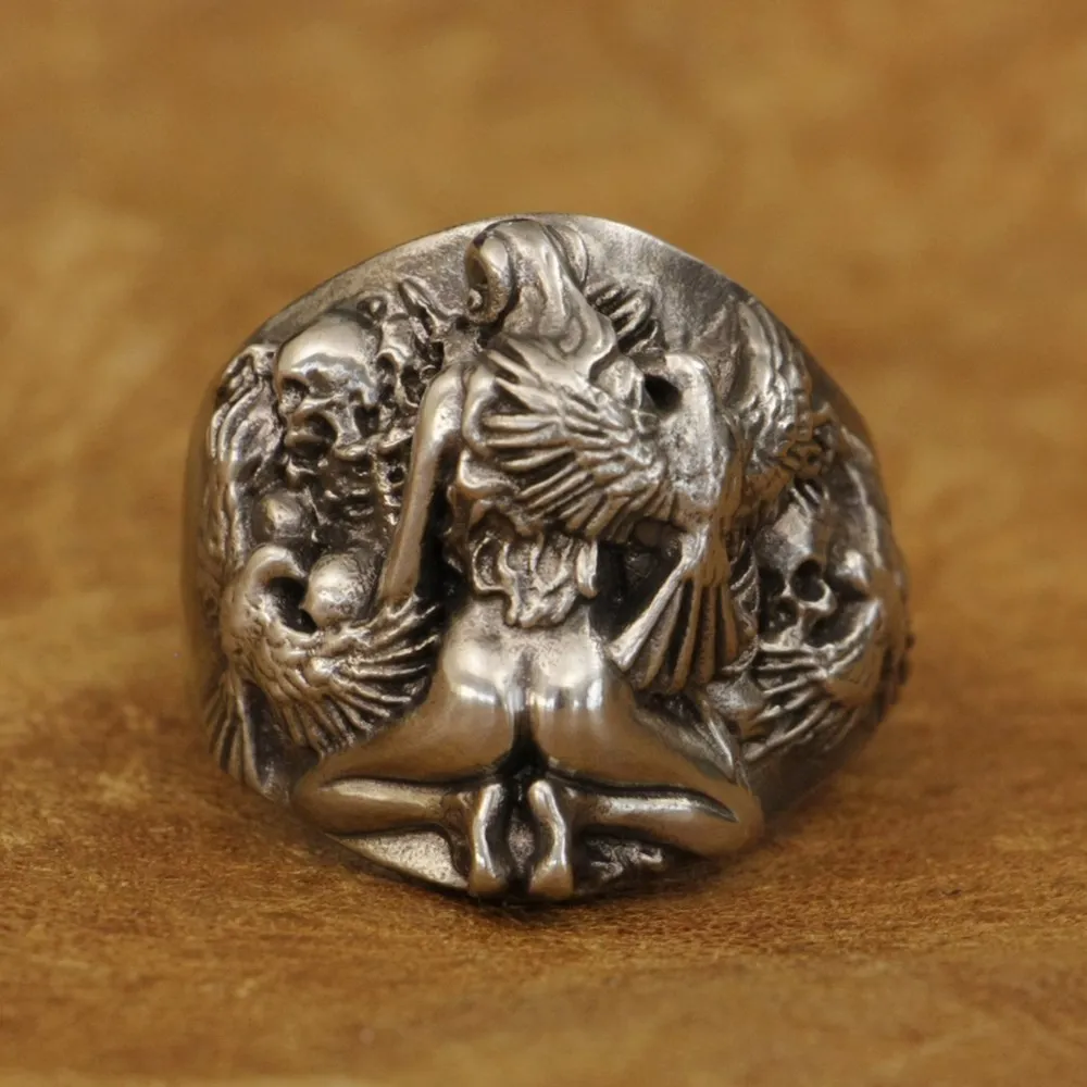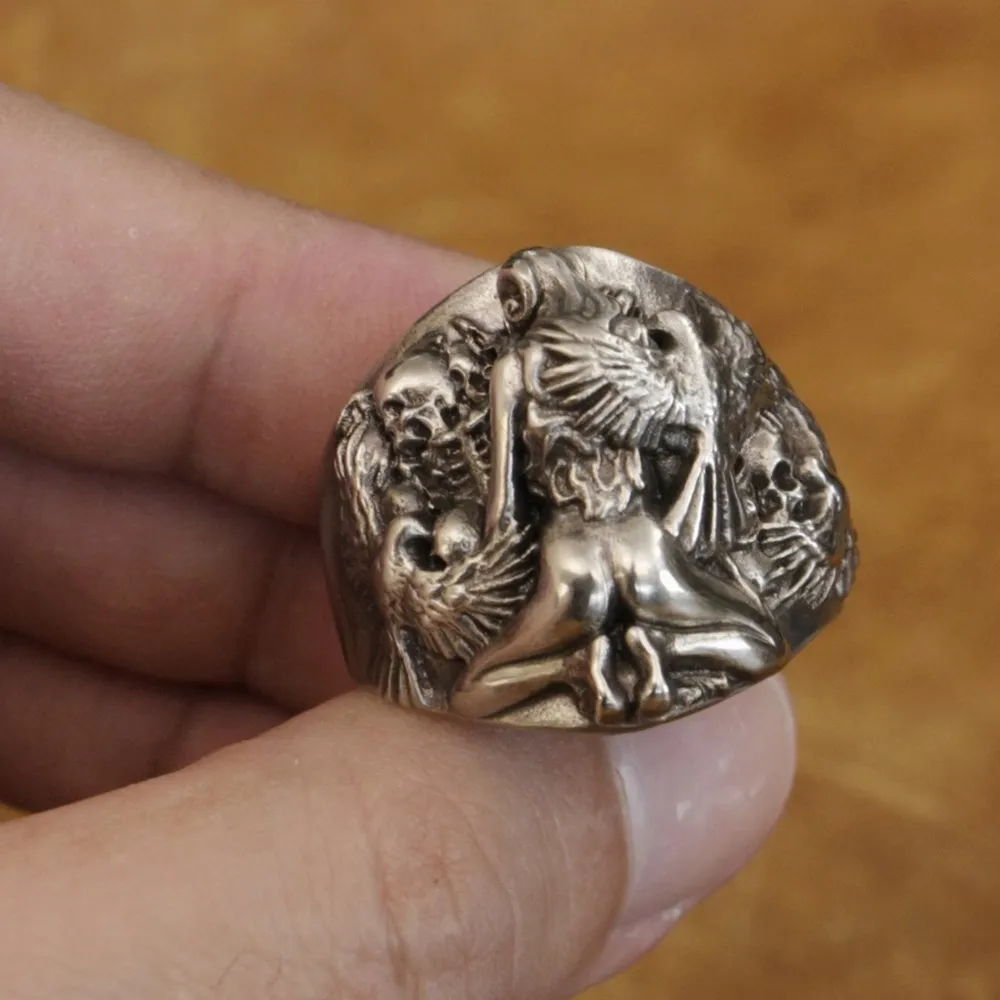 Это уникальное украшение станет прекрасным подарком для любого случая!Состояние:Новый и ручной работы в идеальной готовойМатериал:МельхиорВысота лица:Прибл.24 ммВес:Прибл.21,5 граммРазмер США:#7 ~ #15Примечание: