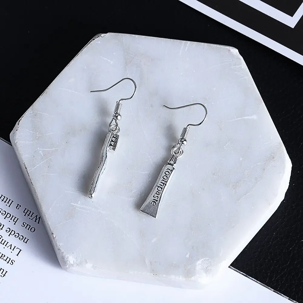 Модные крутые креативные наручники, зубная паста, серьги в стиле панк, висячие серьги с крючком и пистолетом