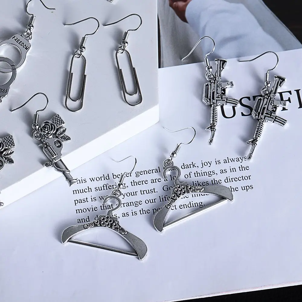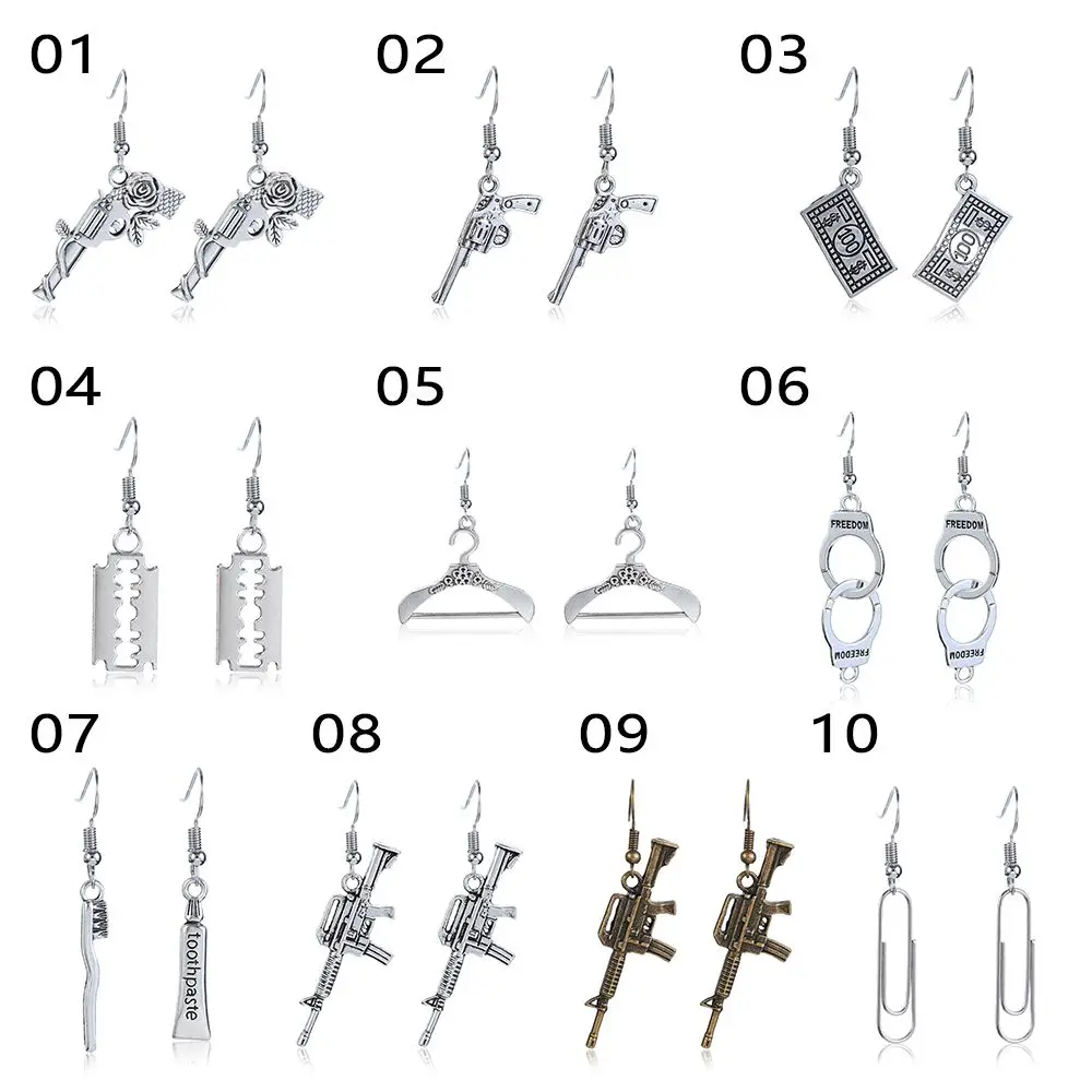 Серьги-подвески в стиле панк, креативные наручники, пистолеты, пист...