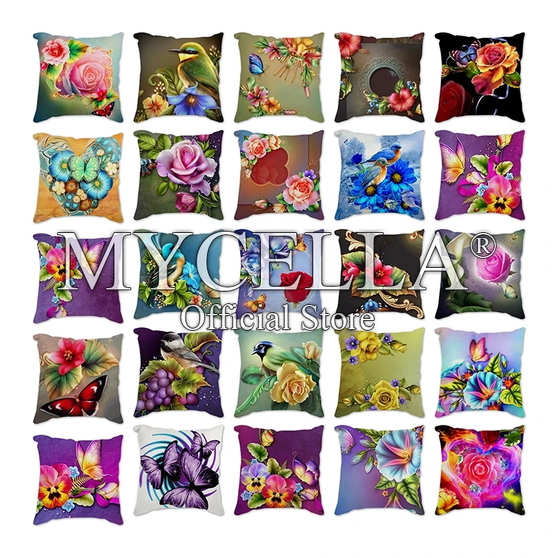 Квадратный абстрактный чехол для подушки 45*45 см, короткая плюшевая наволочка для подушки с изображением цветов, птиц, дивана, спальни, простое украшение для дома, подушка