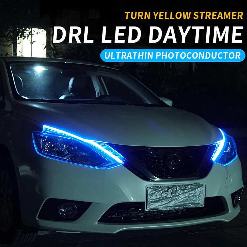 2 шт. 12V Магнитная DRL бары светодиодный люминесцентный тонкий флеш дополнительные Авто головного средства ухода за кожей Шеи светильник с белым светом сигнал поворота желтый крепление светильник