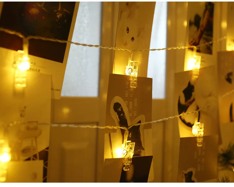 1. Прозрачный СВЕТОДИОДНЫЙ зажим для фотографий. Каждый зажим содержит светодиодный светильник, который излучает теплый белый светильник.
