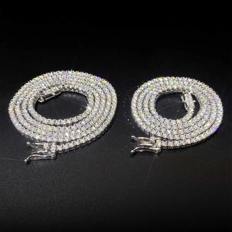 Ожерелье мужское из серебра 925 пробы, с муассанитом, 3 мм