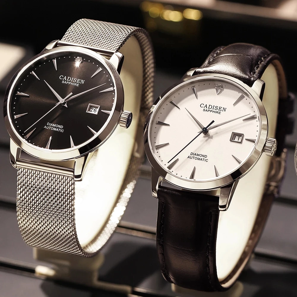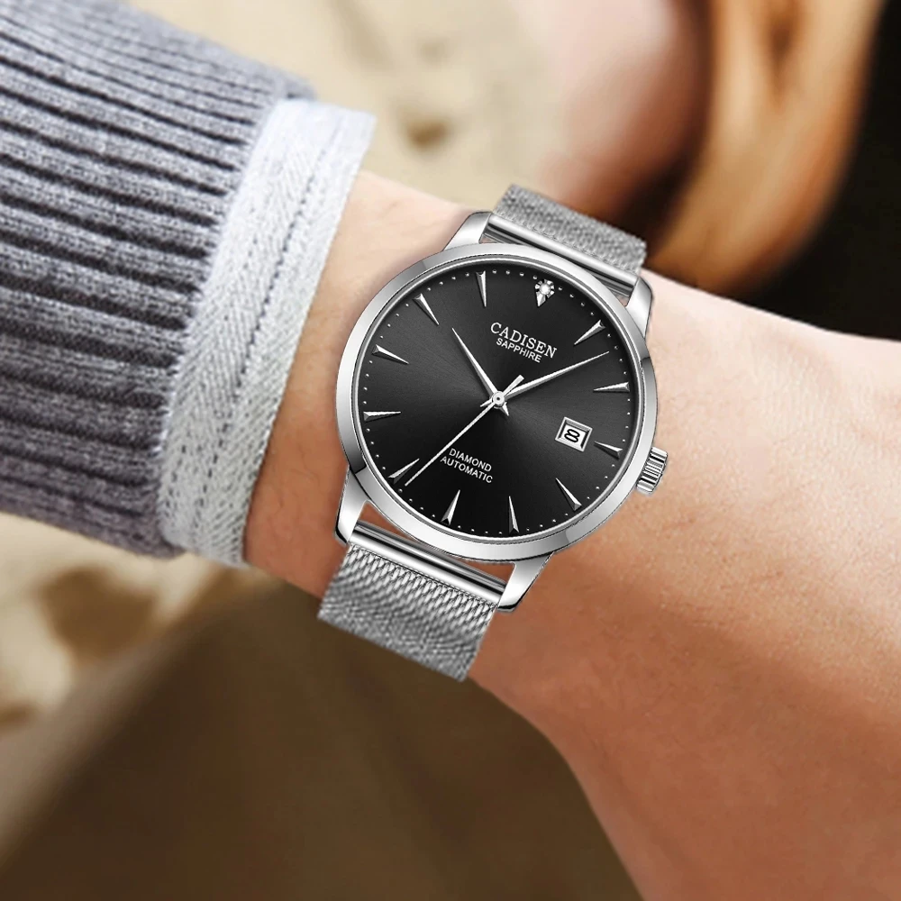 Мужские часы CADISEN C8097, японская модель, автоматические часы, механические наручные часы, настоящие часы с бриллиантами