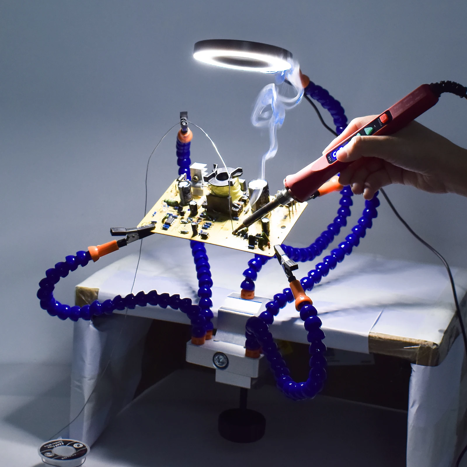 Третья ручка для пайки NEWACALOX с 3X светодиодным увеличительным стеклом, Настольный зажим, гибкая рукоятка, держатель печатной платы, сварочный ремонт