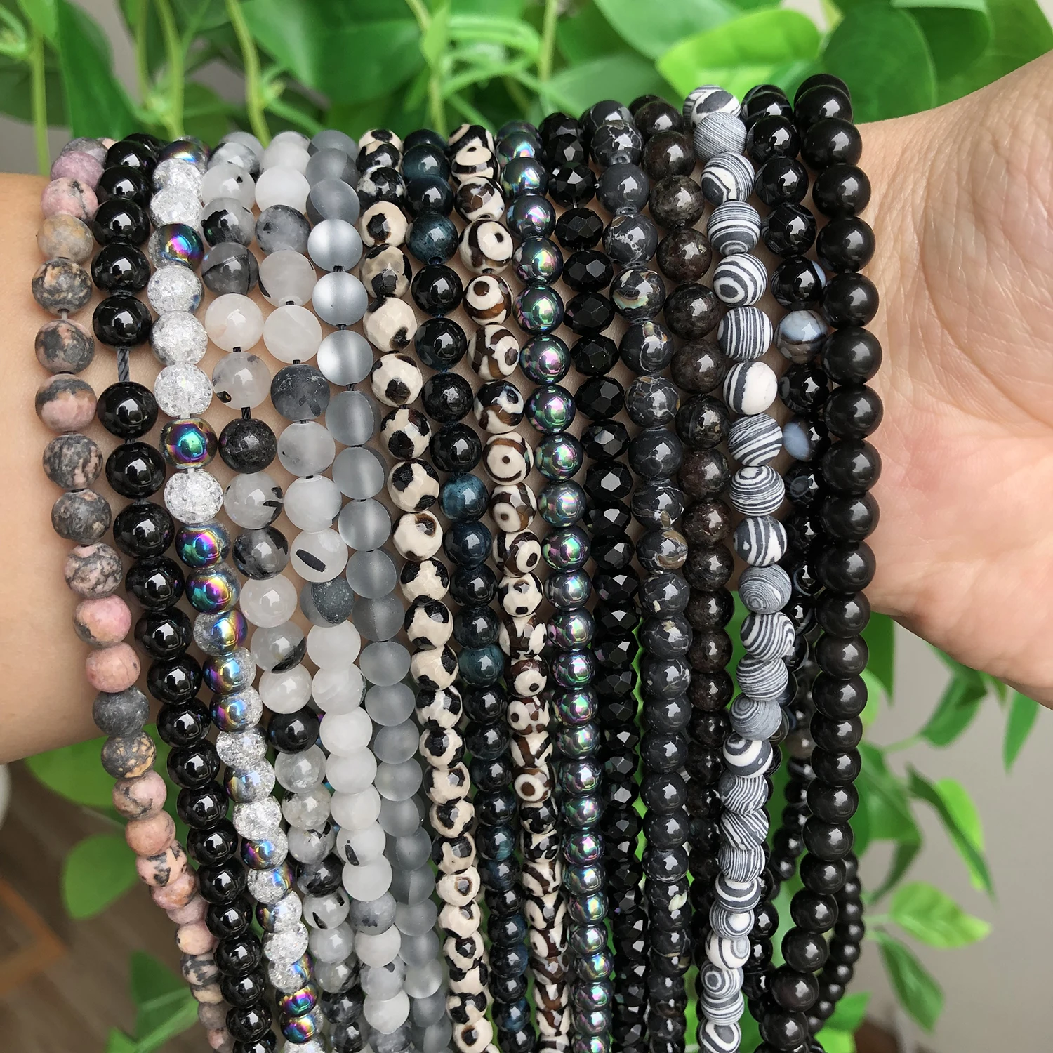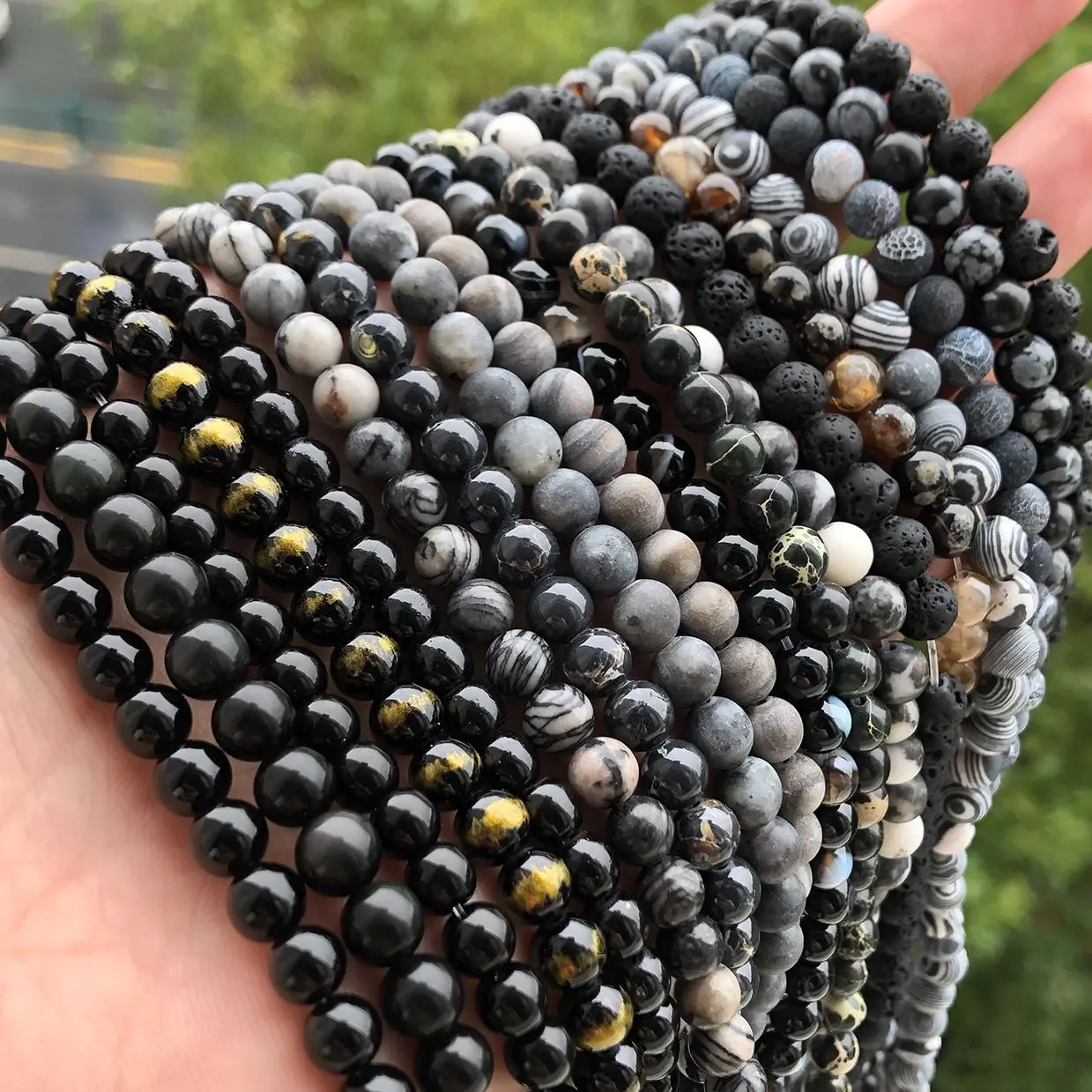 4-12 мм натуральный камень, черные драгоценные камни, бусины из агата, гематита, кристалл вулканической лавы, кварц, круглые бусины, стандартные браслеты