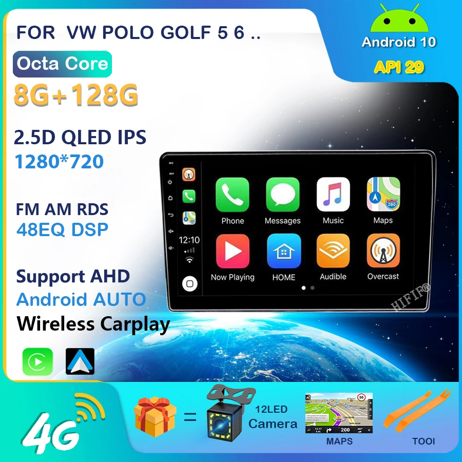 Автомагнитола 2DIN на Android 10 для VW POLO GOLF 5 6 Plus PASSAT B6 CC JETTA TIGUAN TOURAN EOS SHARAN SCIROCCO CADDY с 4G GPS Navi