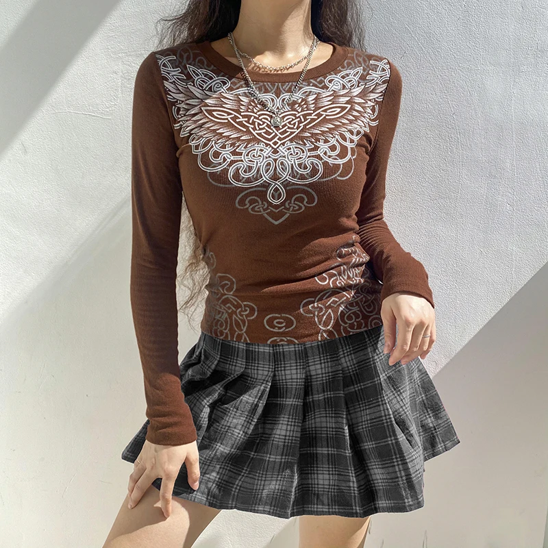 Футболка Y2K с изображением сказочной эстетики, укороченные топы с винтажным цветочным принтом в стиле панк, уличная одежда, футболки с длинным рукавом, толстовки, футболка, Женский Осенний Топ
