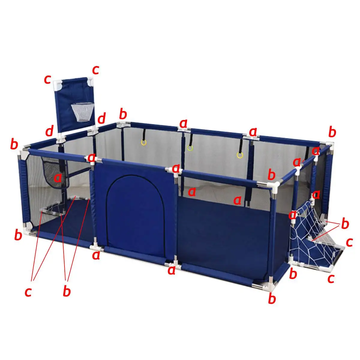 Посылка включает:20 x трубка (56,3 см)17 x трубка (36,6 см)8 x трубка (27 см)4 x трубка (21 см)1 х тканевый чехолБаскетбольная рама-1 шт.2 x сетки3 х натяжных кольца1 посылка пластиковых деталейПримечание:● Возможны незначительные отклонения в измерениях из-за ручного измерения.● Из-за различных мониторов и другого светильник, изображение может не отражать фактический цвет изделия.● Пожалуйста, учитывайте фактические размеры, показанные в списке, так как изображения обычно увеличиваются, чтобы показать детали.