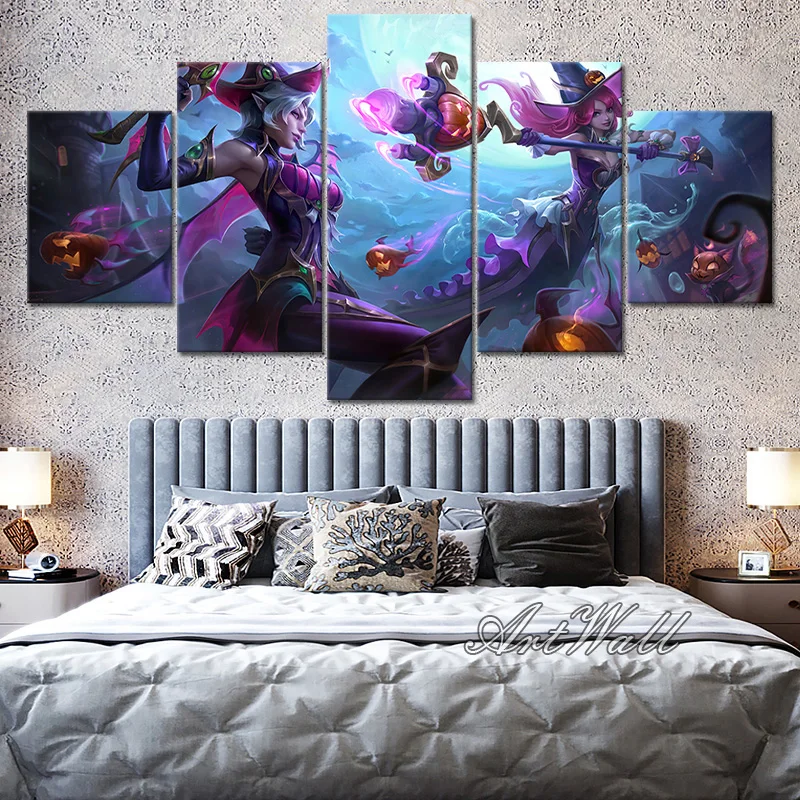 Модульные картины с аниме Akali KDA LOL, 5 панелей, HD принты, плак...