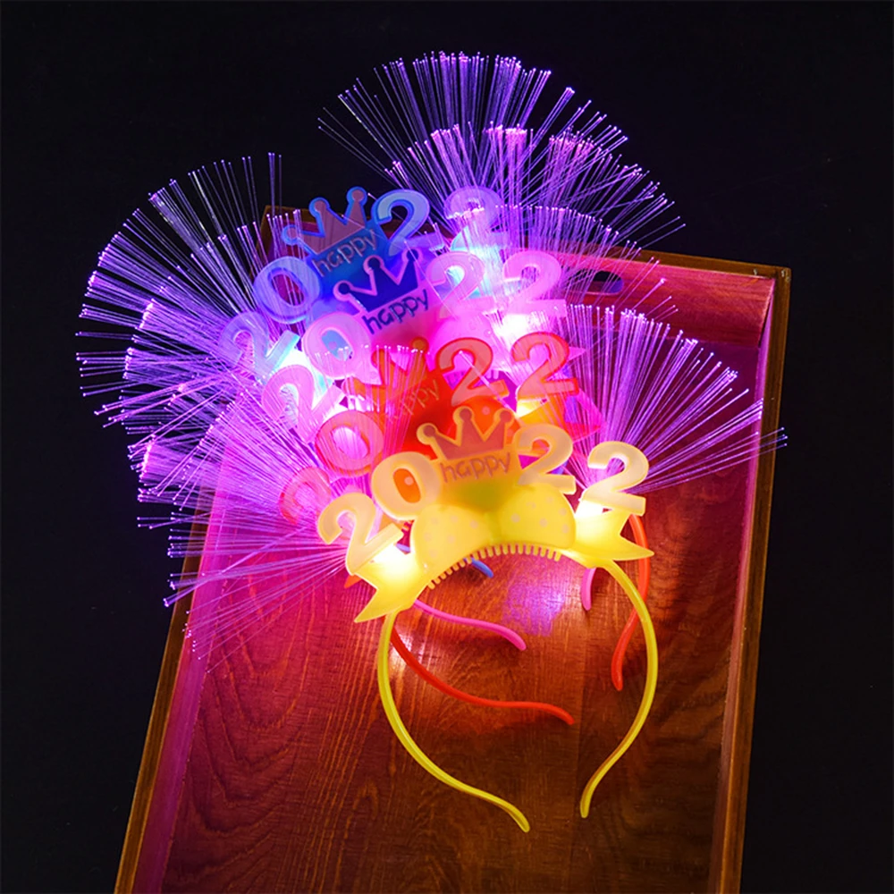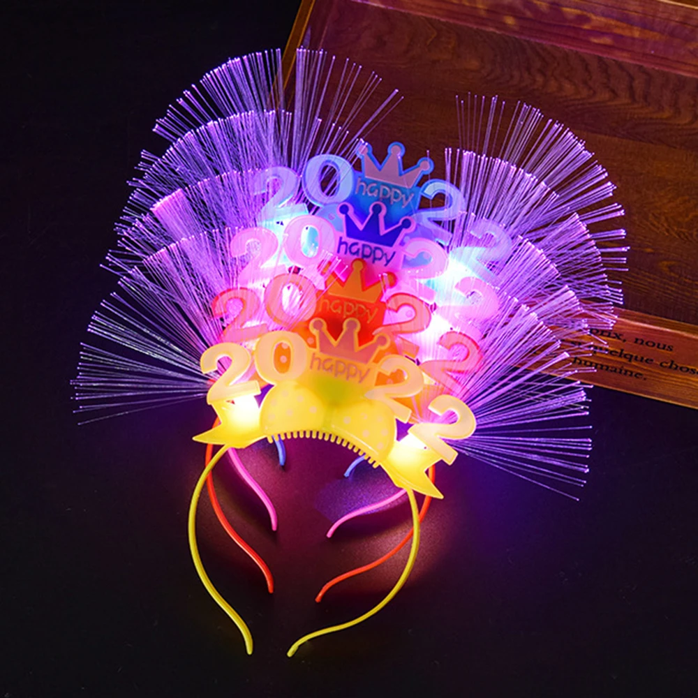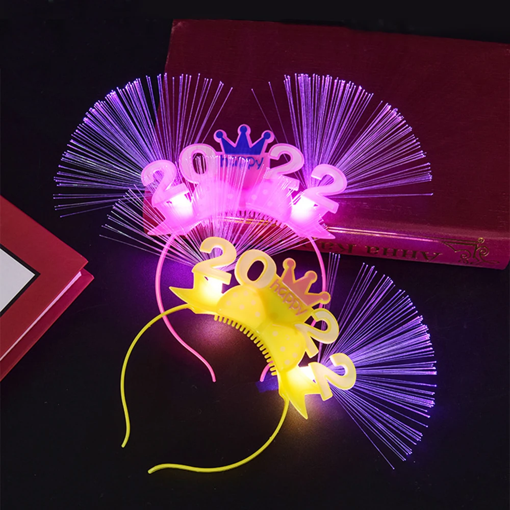 2022 светодиодная светящаяся повязка на голову мигающая Корона из волокна новогодние повязки для волос праздничные украшения 2021 Рождественская вечеринка Декор для вечерние