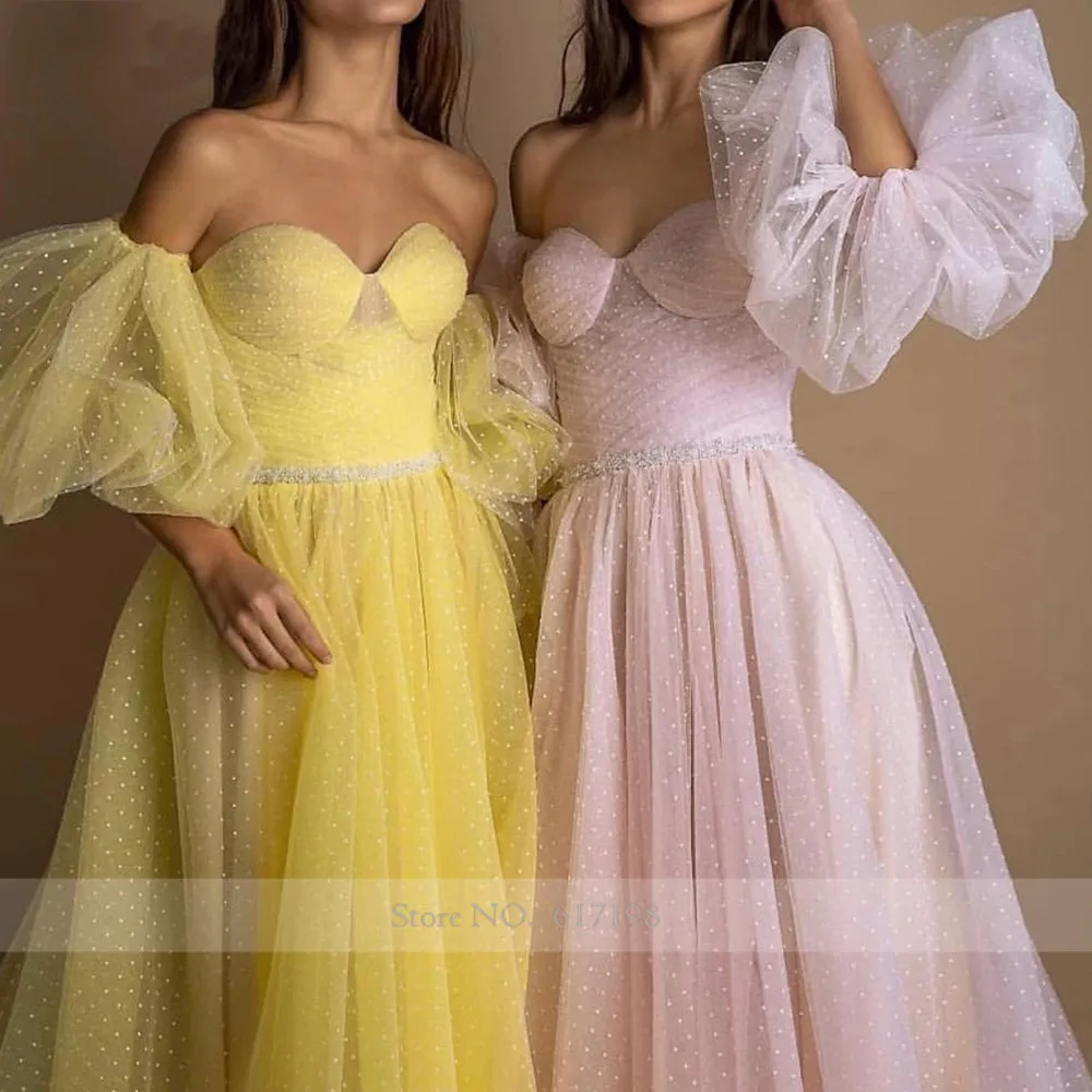 Женское ТРАПЕЦИЕВИДНОЕ вечернее платье, желтое фатиновое платье со съемными короткими рукавами, блестящее платье для выпускного вечера, 2019