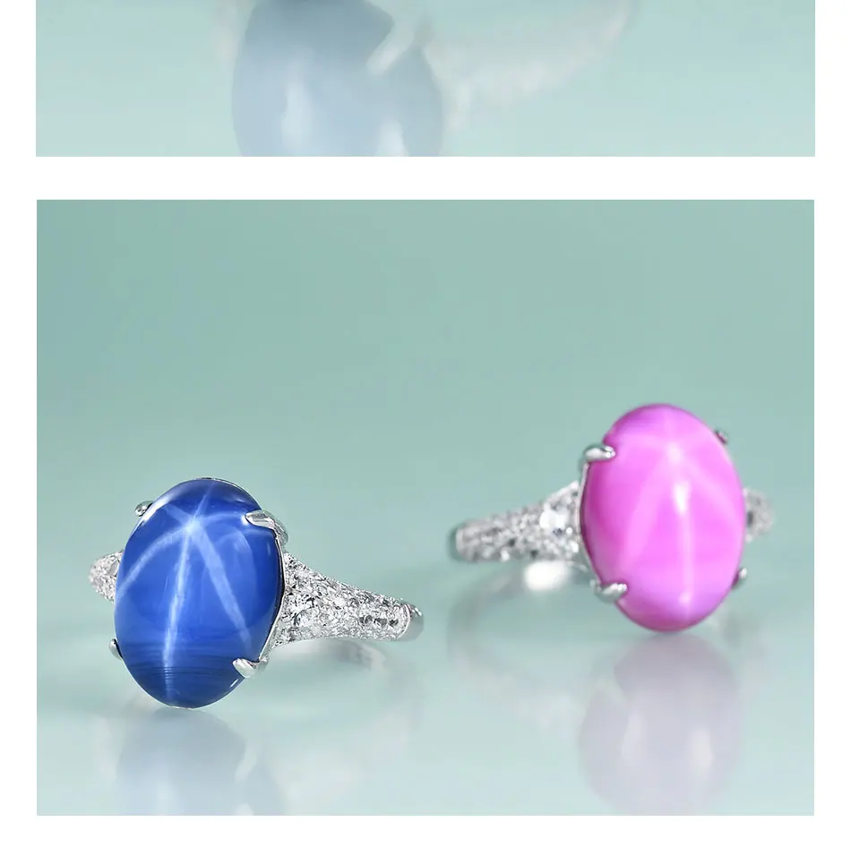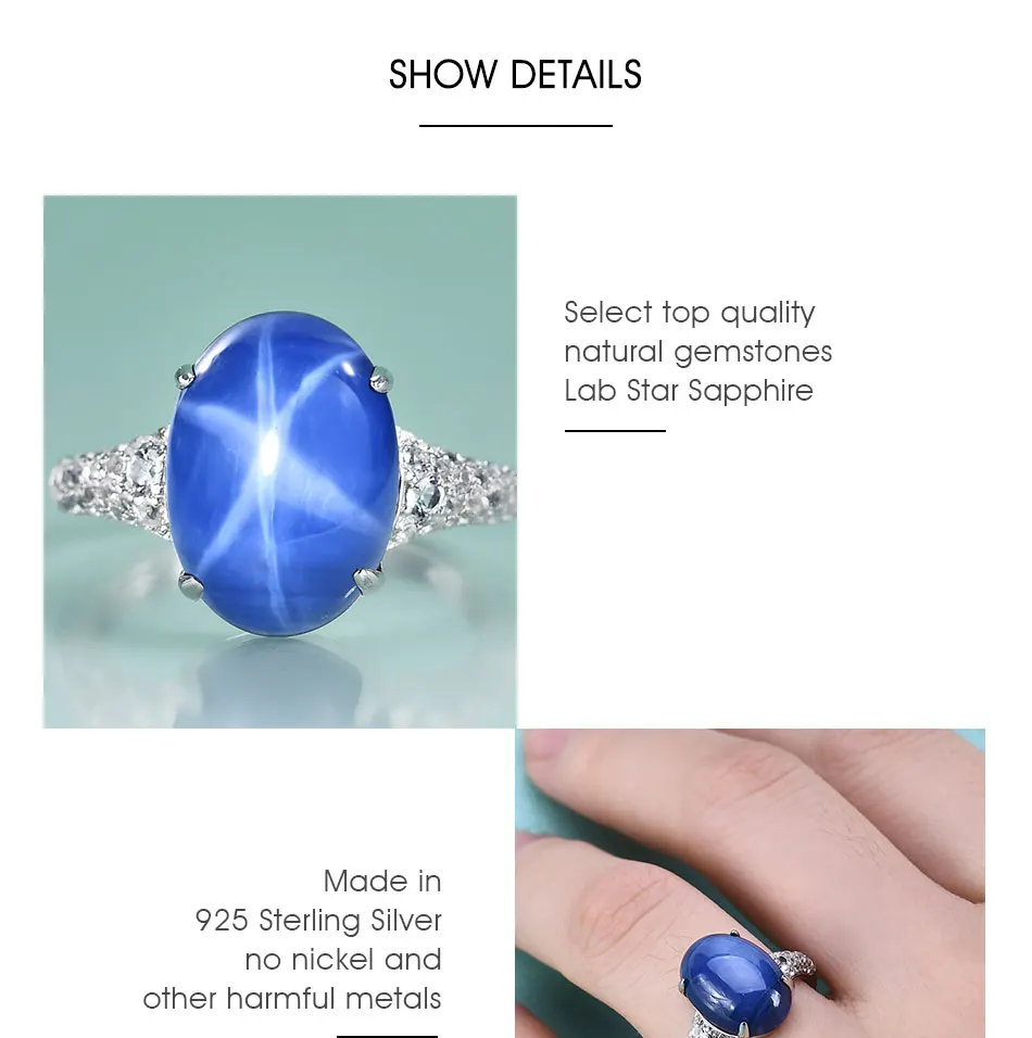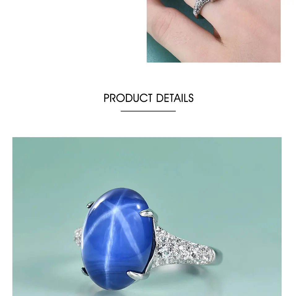 Женское кольцо с сапфиром, серебряное кольцо с овальной звездой, са...