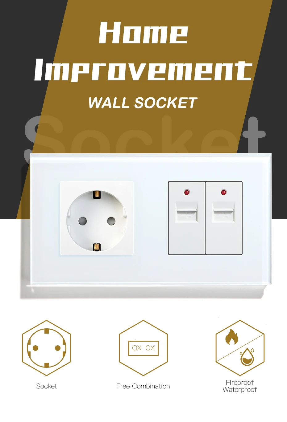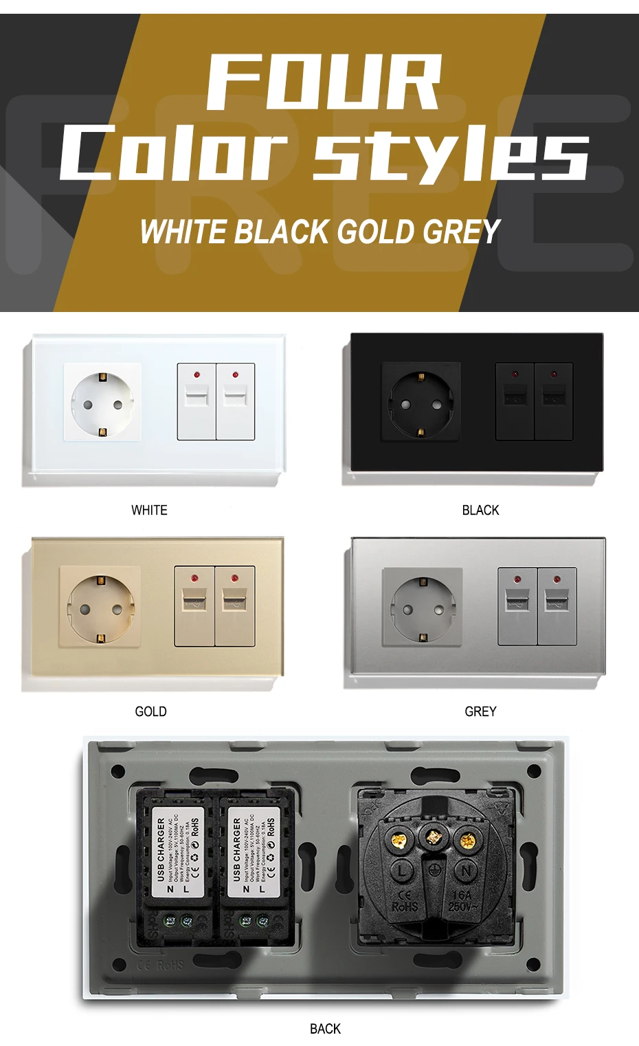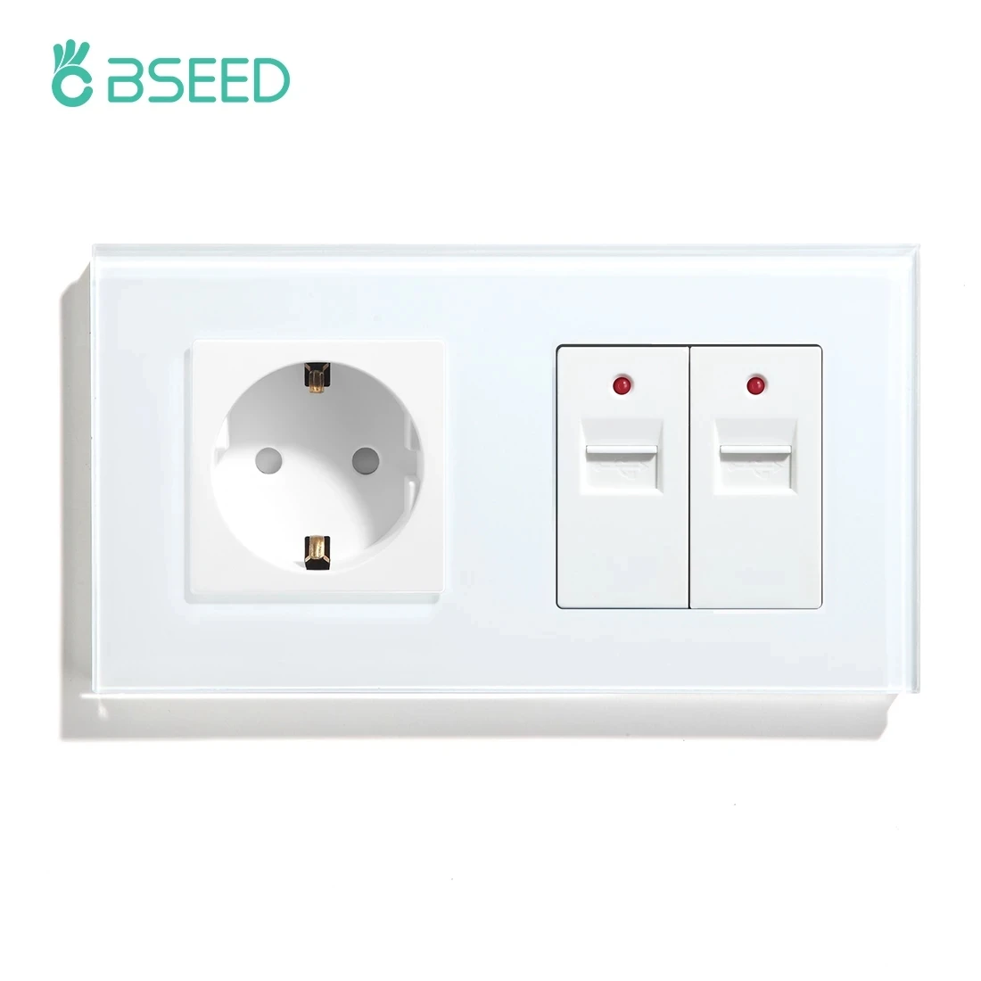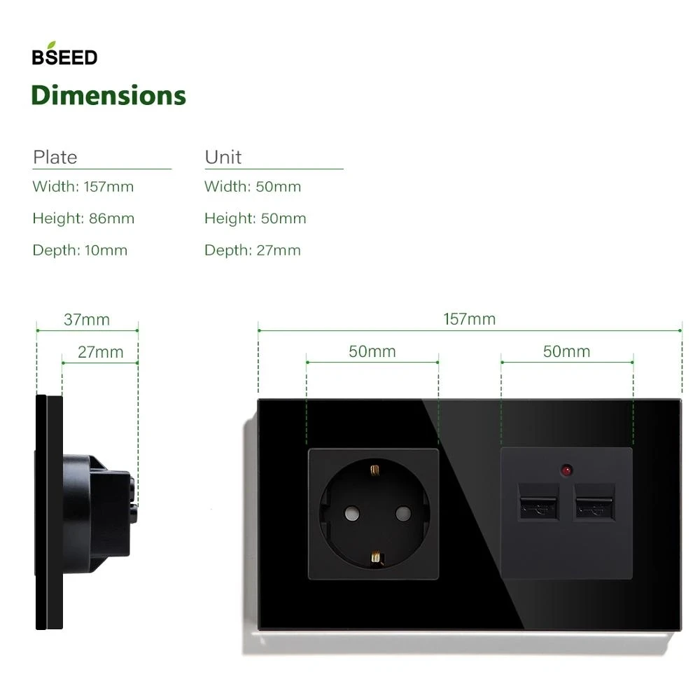 BSEED розетка ЕС Стандартный с USB Зарядное устройство настенная розетка 100V-240V белого черного и золотого цвета с украшением в виде кристаллов Стекло Панель