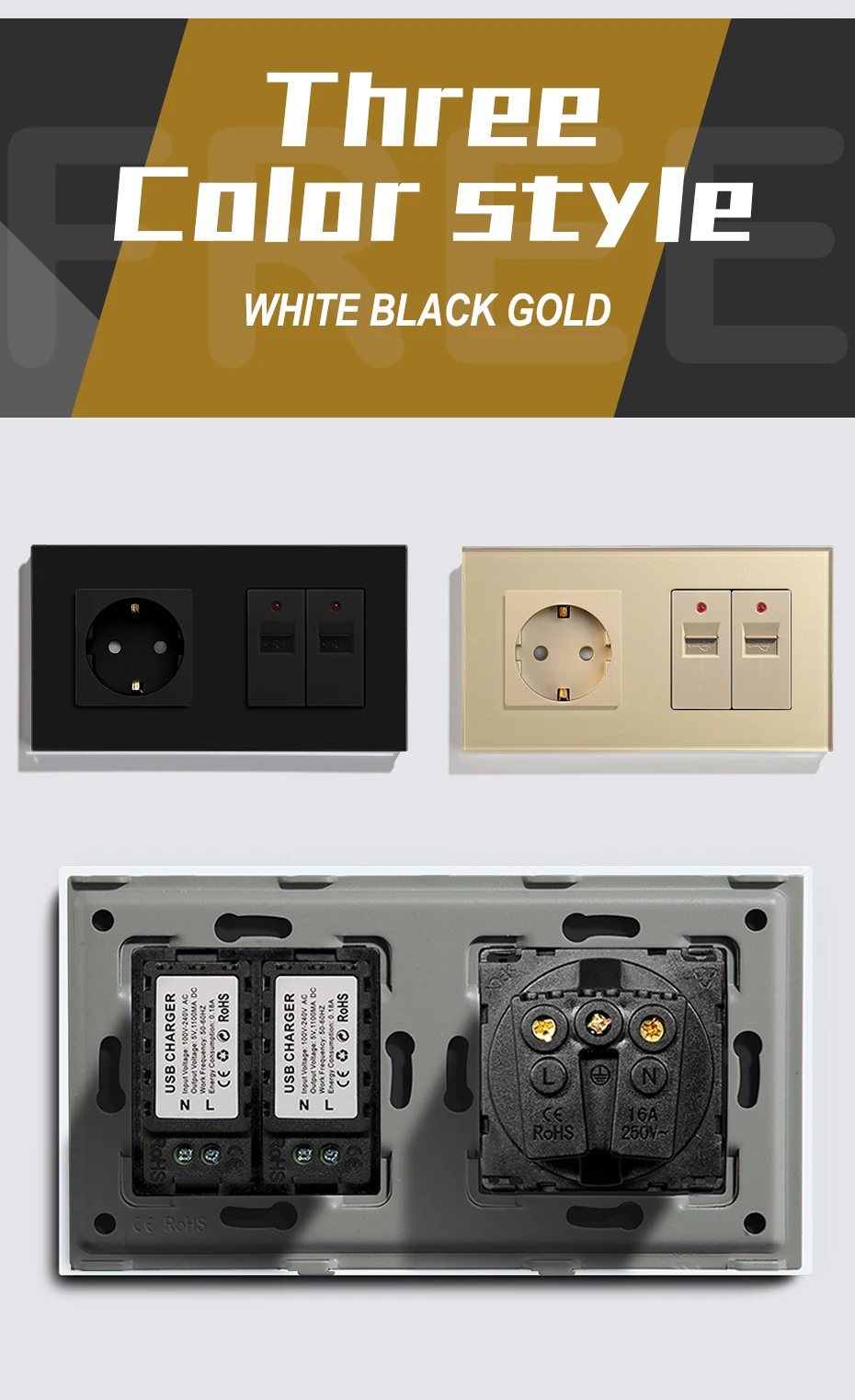 Материал: стеклянная панель, железная пластина и пластиковый модуль переключателя