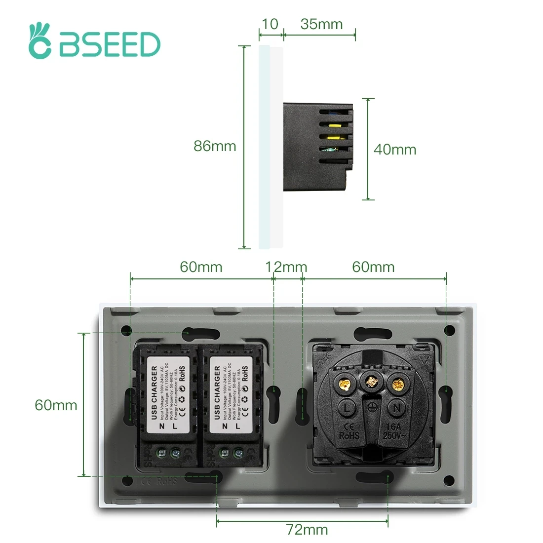 Розетка BSEED с двумя USB-портами и зарядным устройством европейско...